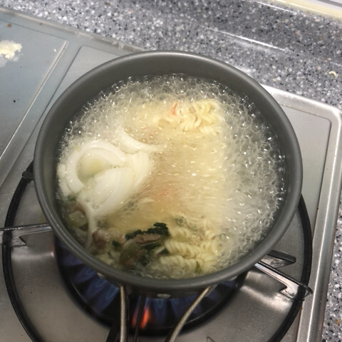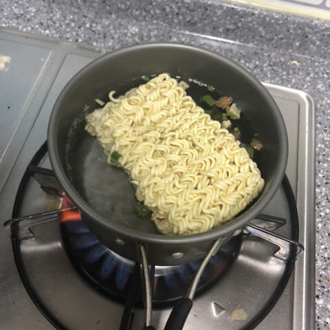 끓고있는 라면물 숟가락으로 1스푼 퍼서