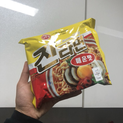 이 과정샷에는 진라면 매운맛이 사용됩니다.