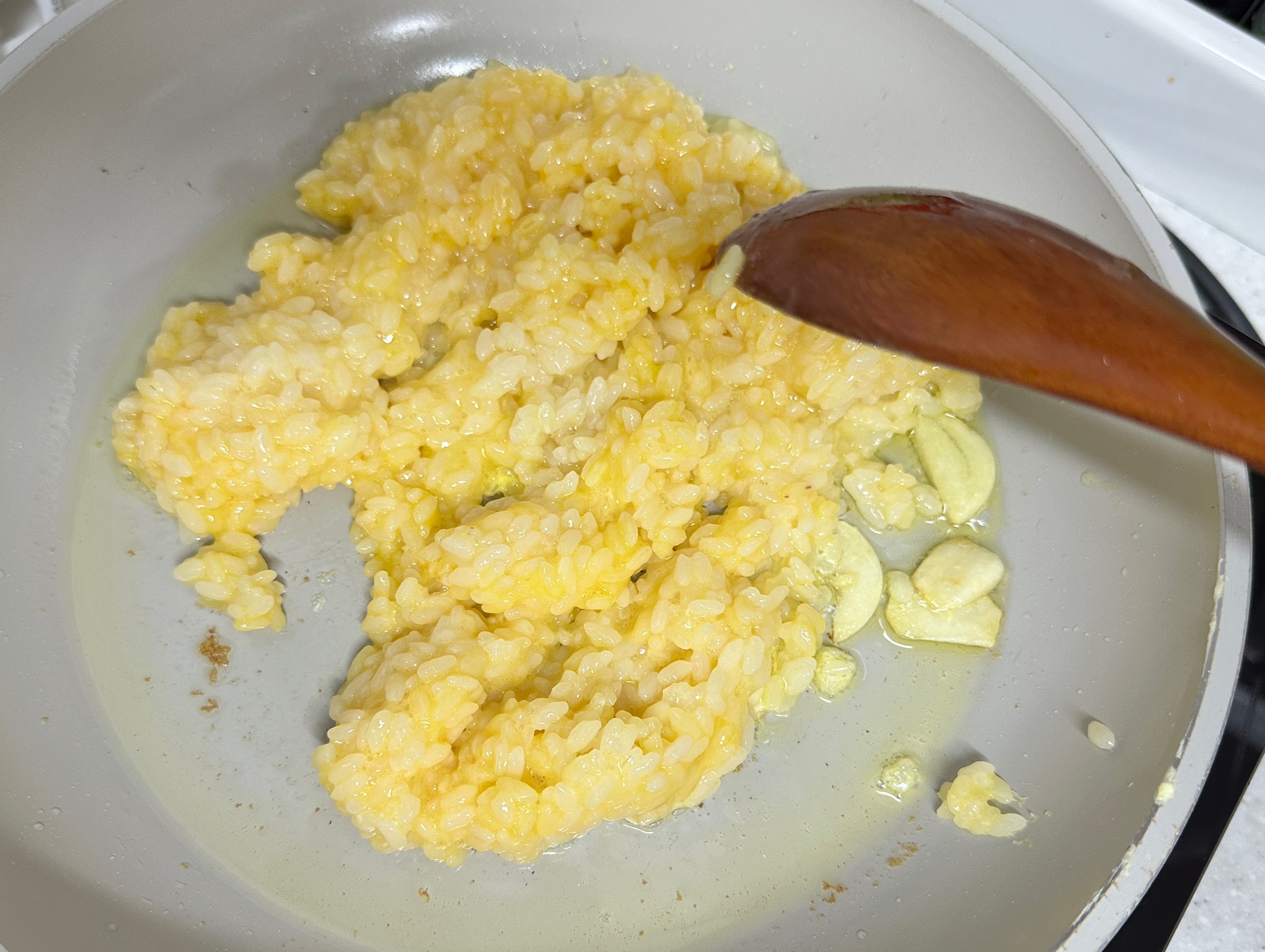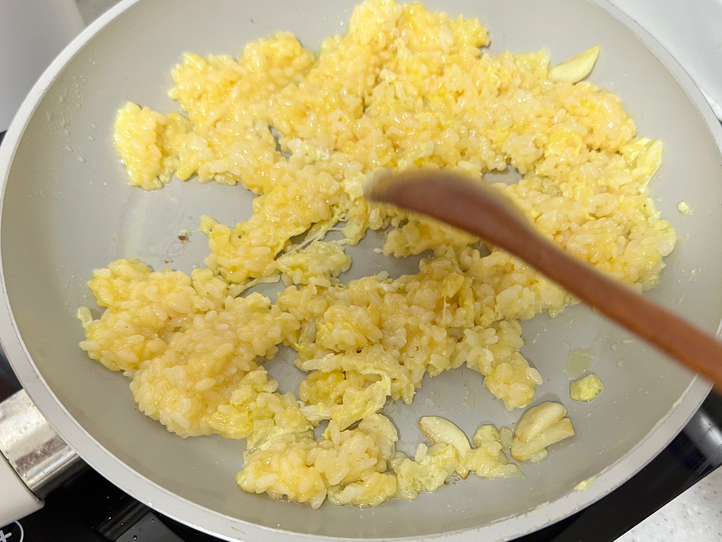 📍볶는 게 중요한데, 나무주걱으로 밥 알을 하나하나 뜯는다는 생각으로 주걱을 세워서 볶아준다