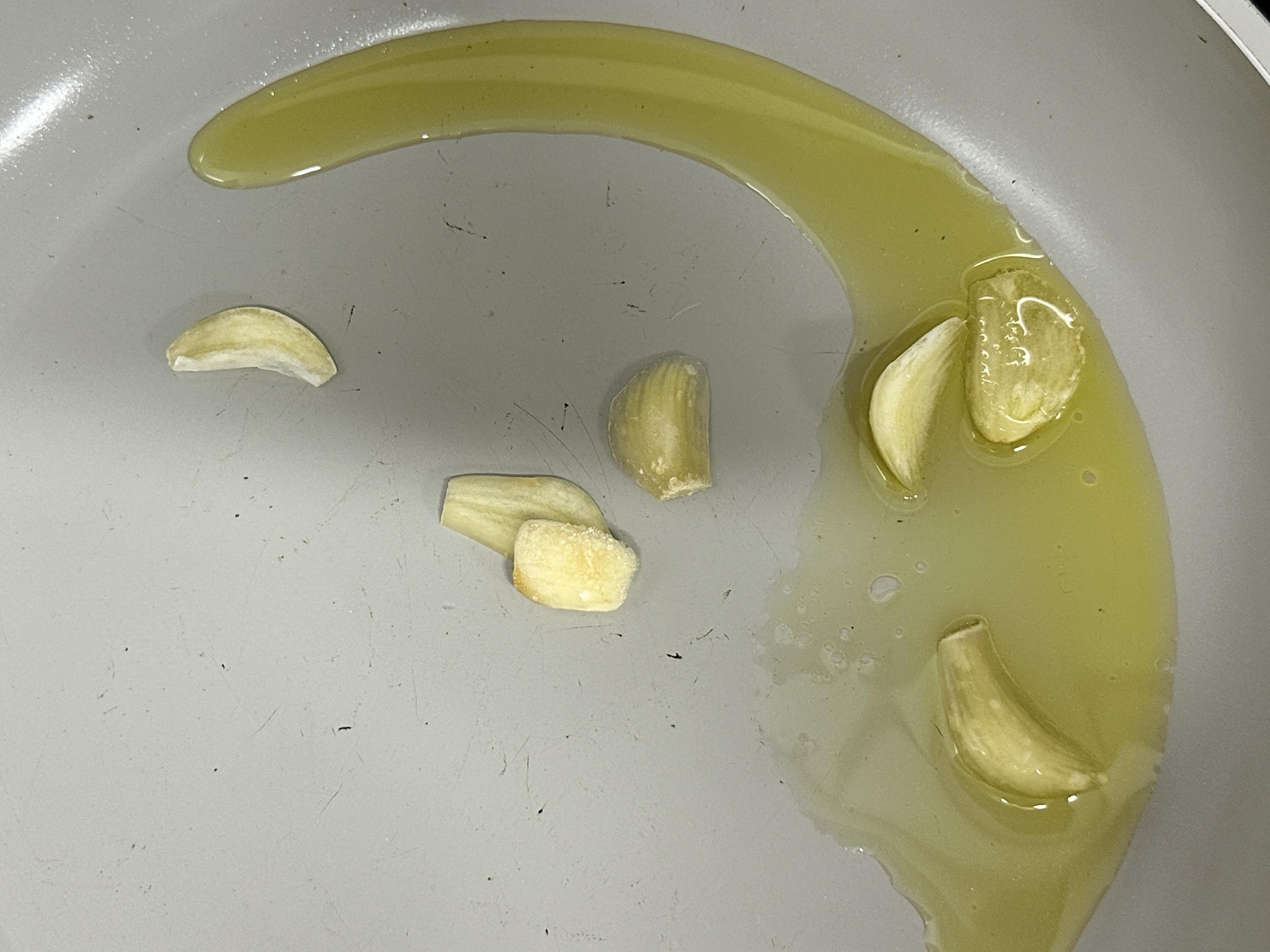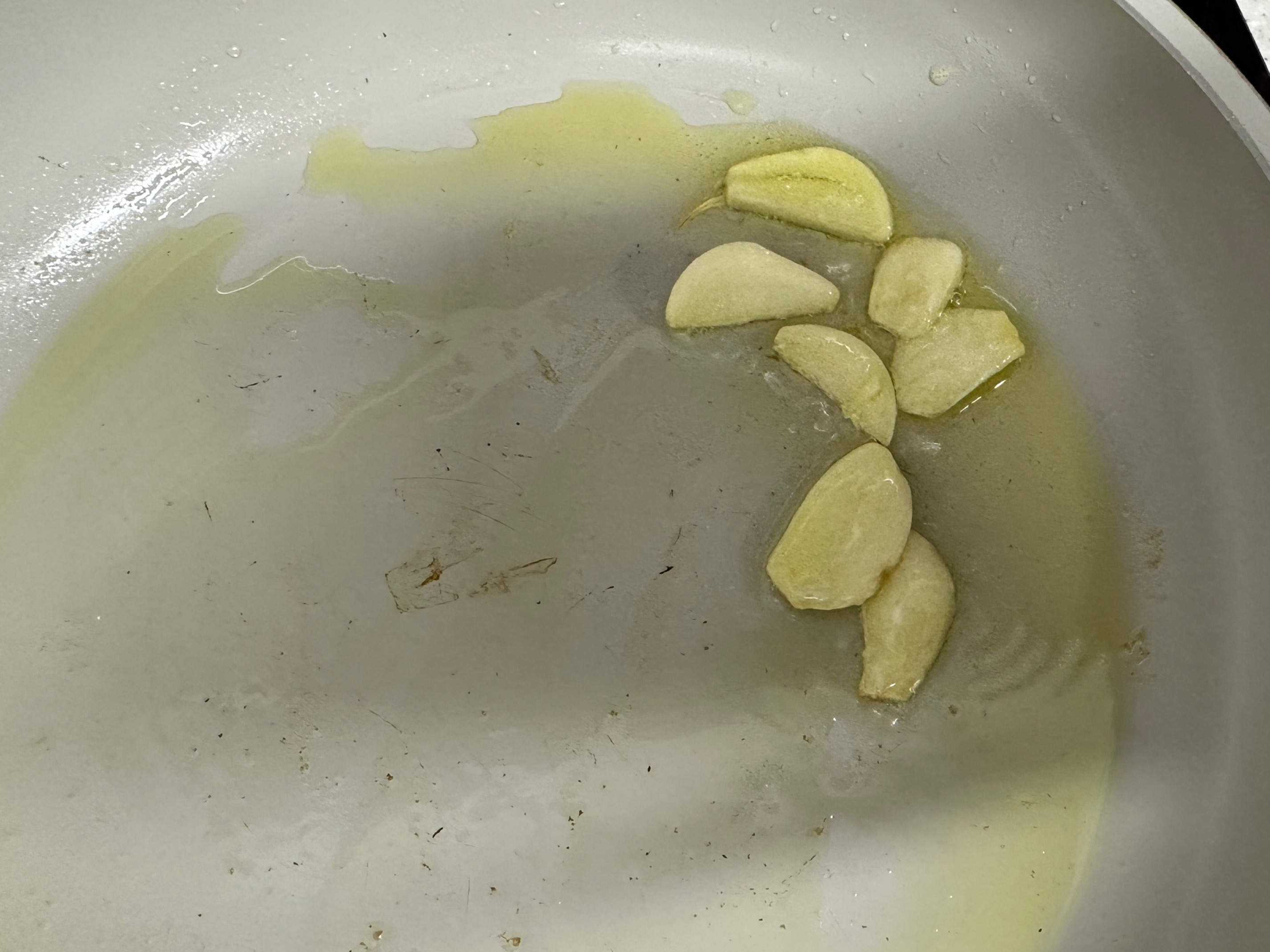 1. 후라이팬에 마늘 편을 식용유에 볶는다