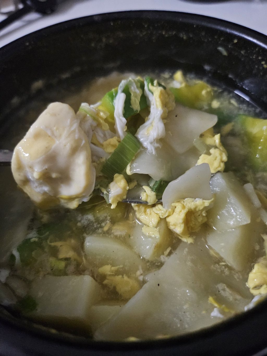 5. 끓으면 대파 넣는다.