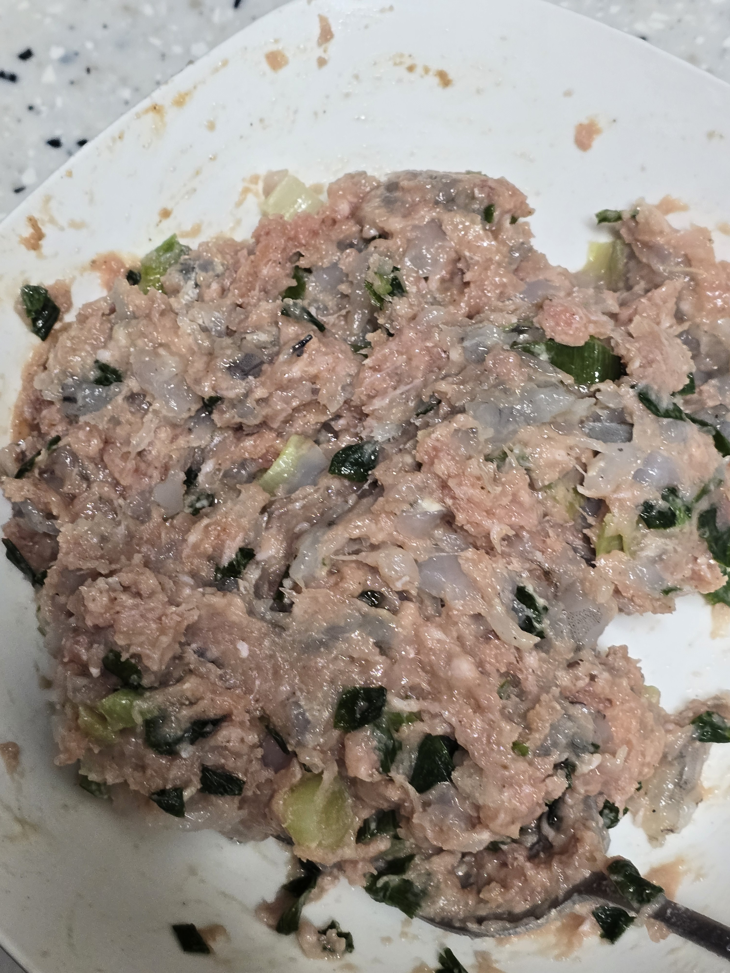 다진돼지고기 2 : 다진새우살 1 비율로 준비
