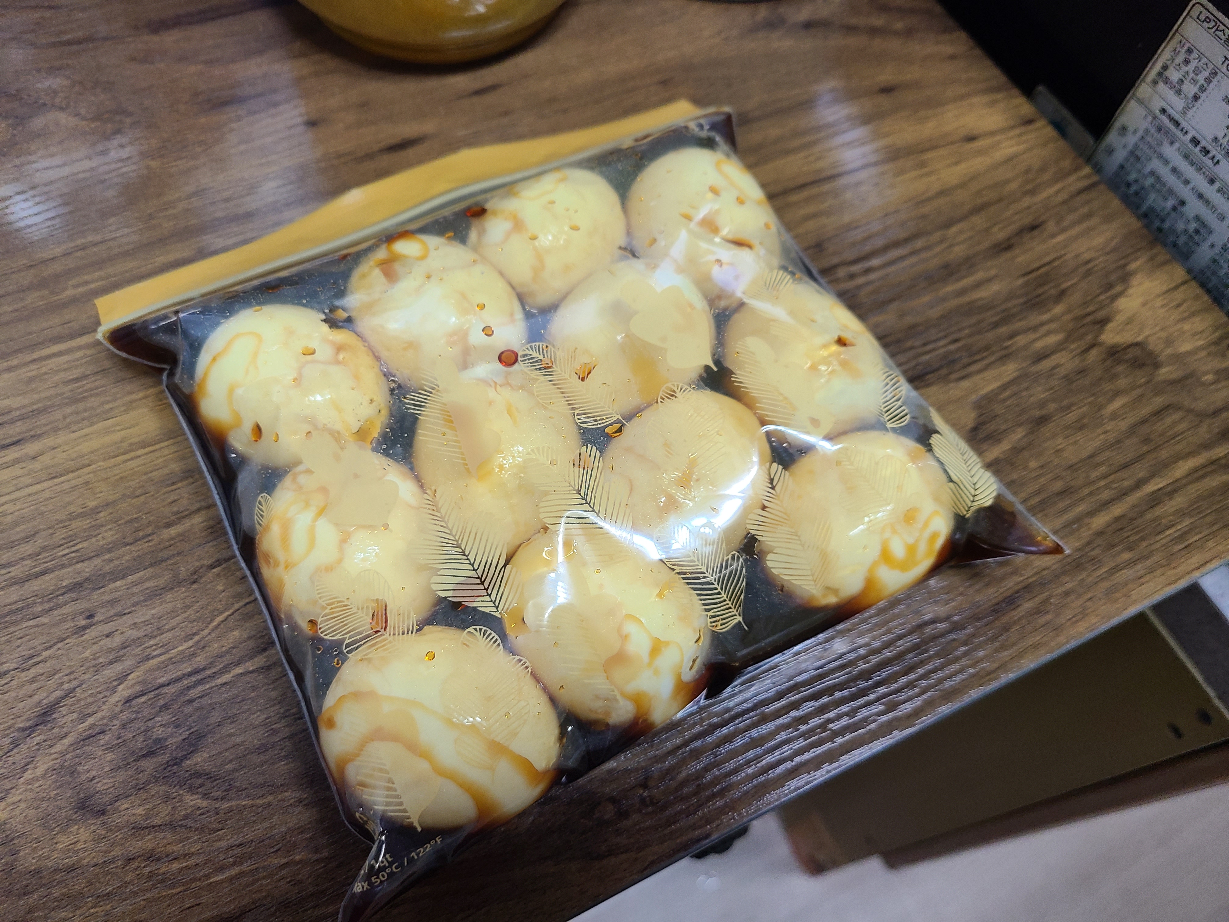 5. 지퍼백에 넣고, 적당히 식은 간장을 부어준다.
