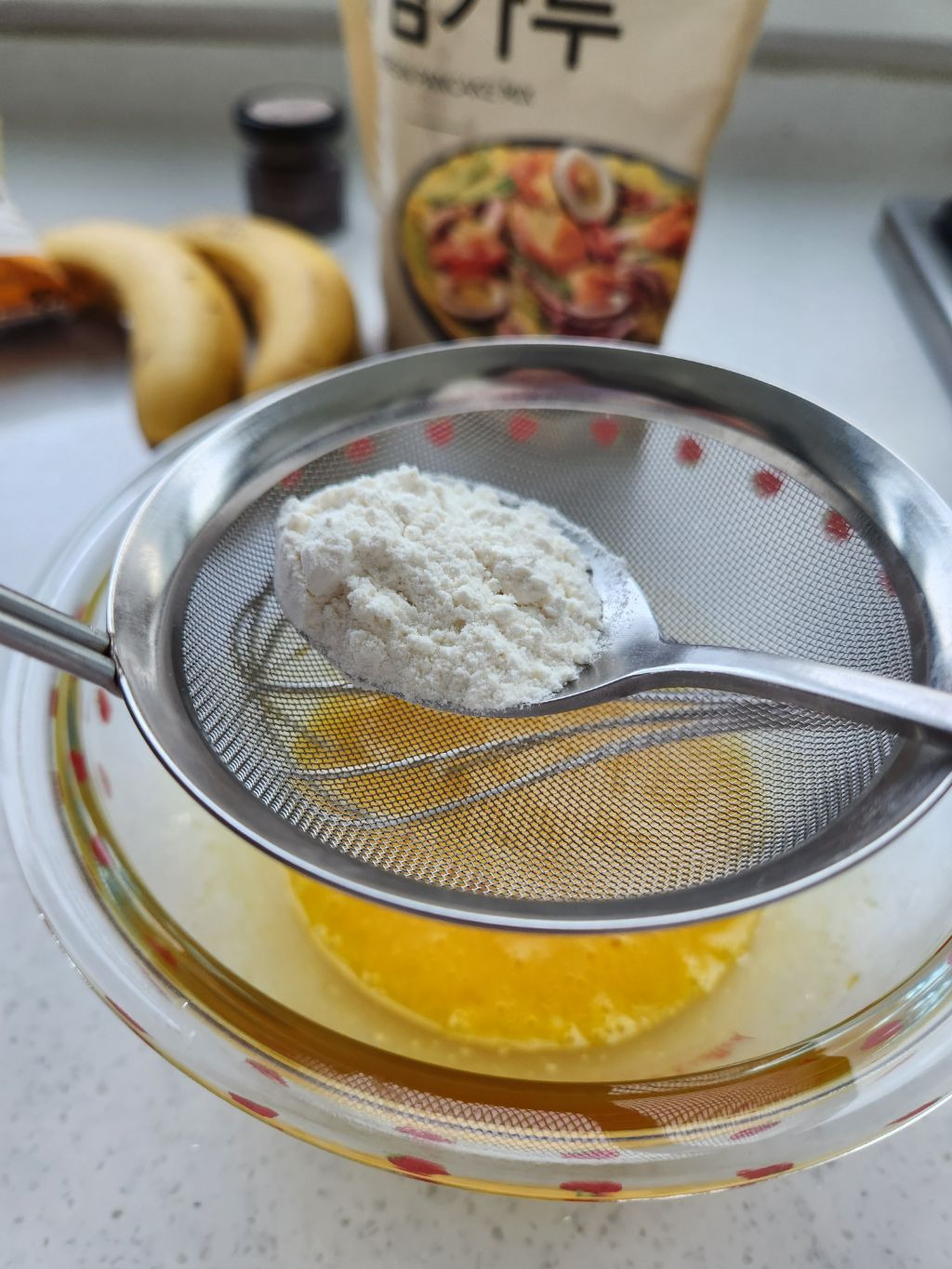3. 박력분 2큰술 체에 걸러서 섞어준다