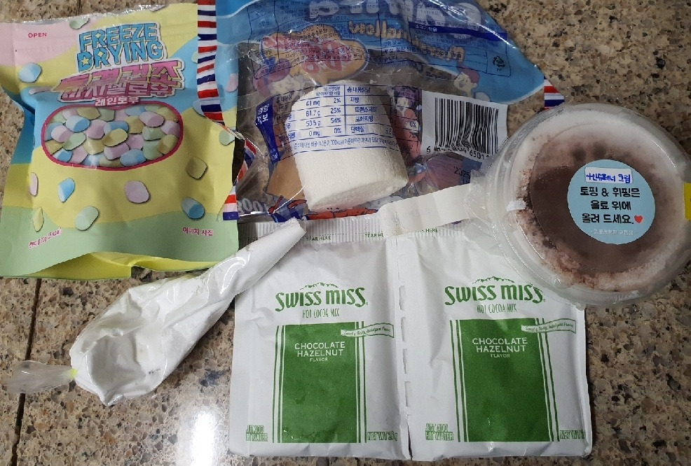 그래서 재료에 핫초코 2봉이라고 쓴 거임 우린 2개분 마실 거거든요ㅎ