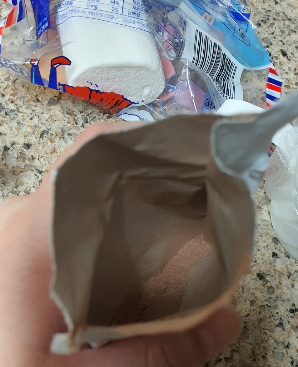 그 위에 남은 핫초코 가루 다 털어주면 끝입니다
