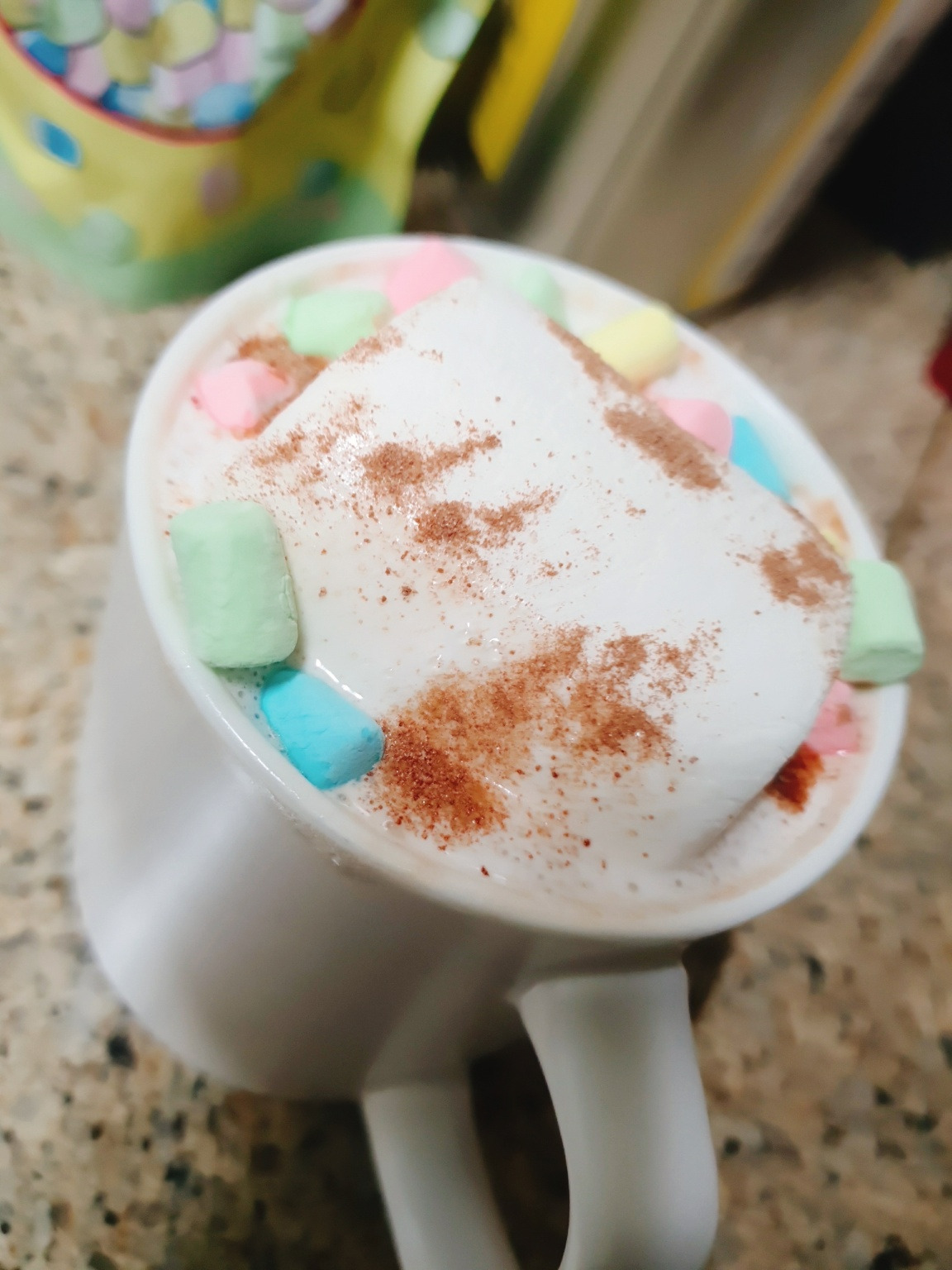 그냥 핫초코 타다가 대왕 마멜 올려놓으면 이렇게 돼요