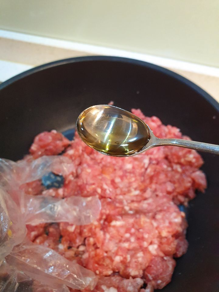 잘섞고 치대주며 3분이상 방치 (고기부드럽게해두기)