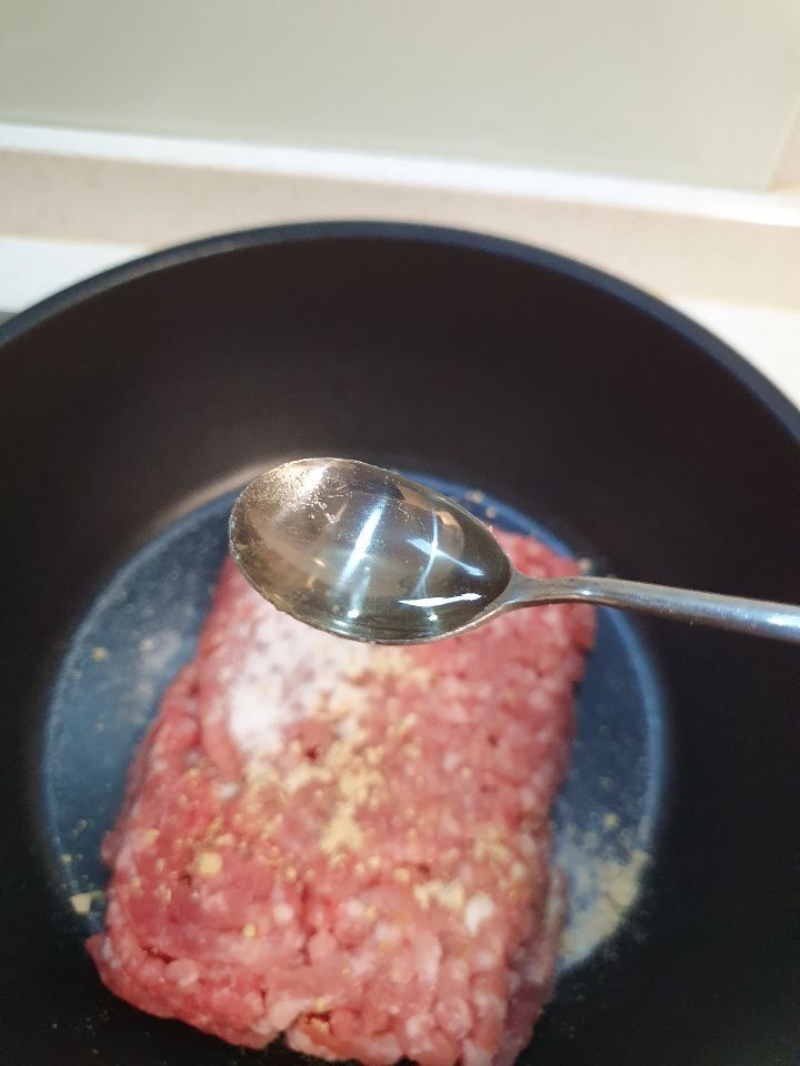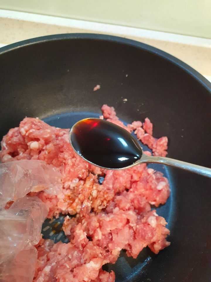 3. 돼지고기에 간장2티스푼, 식용유3티스푼 넣고