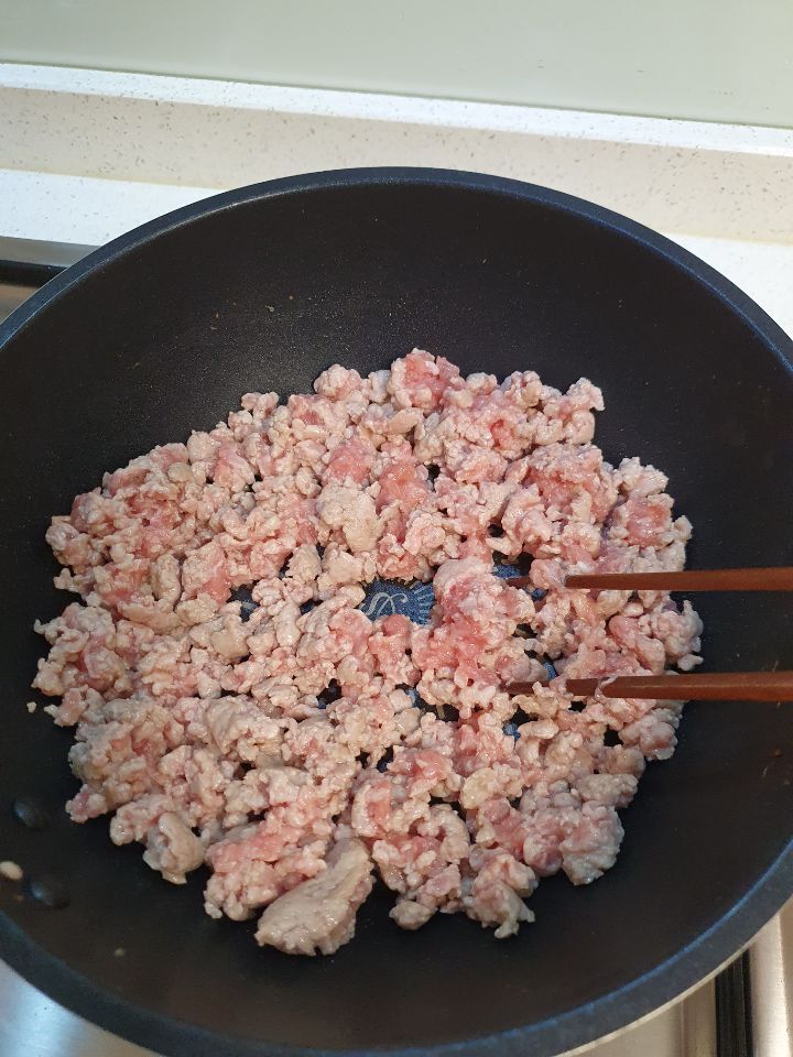 🥲고기를 미리 익히는 레시피라 고기 냄새 절대 안남 하지만 돼지고기의 퍽퍽함이 조금 생기므로