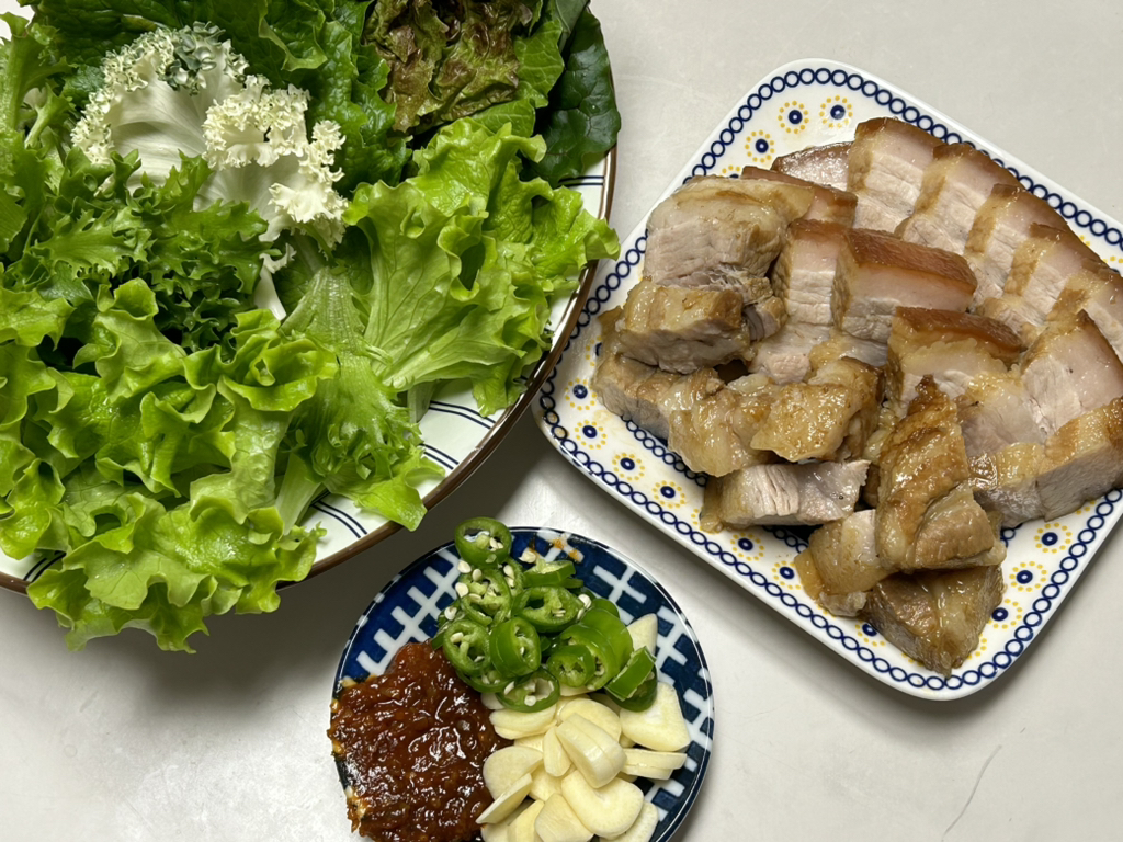 쌈채소보니까 못참겠어서 수육까지…