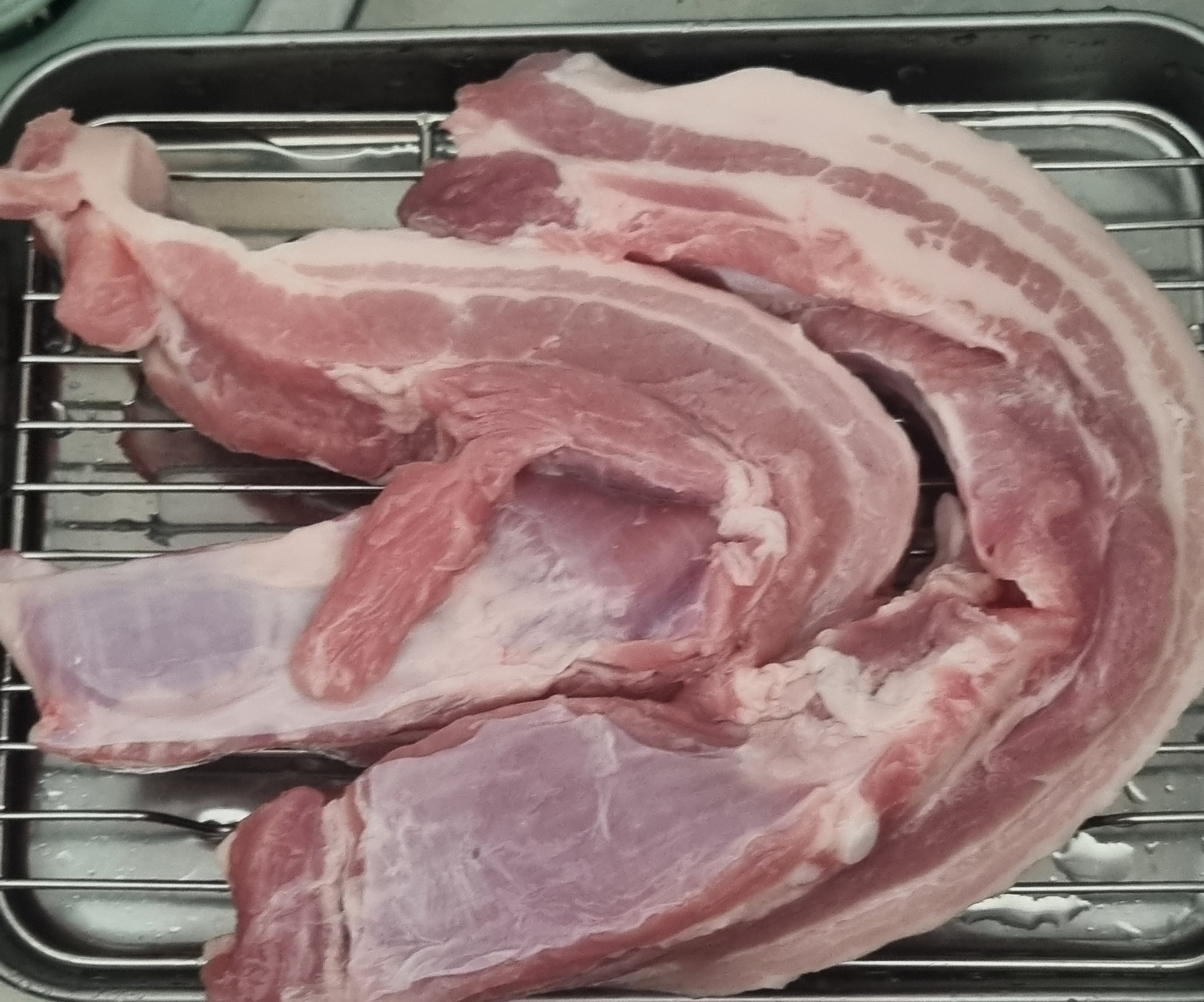 2. 삼겹살을 물에 담그거나 헹궈서 핏물을 뺀다