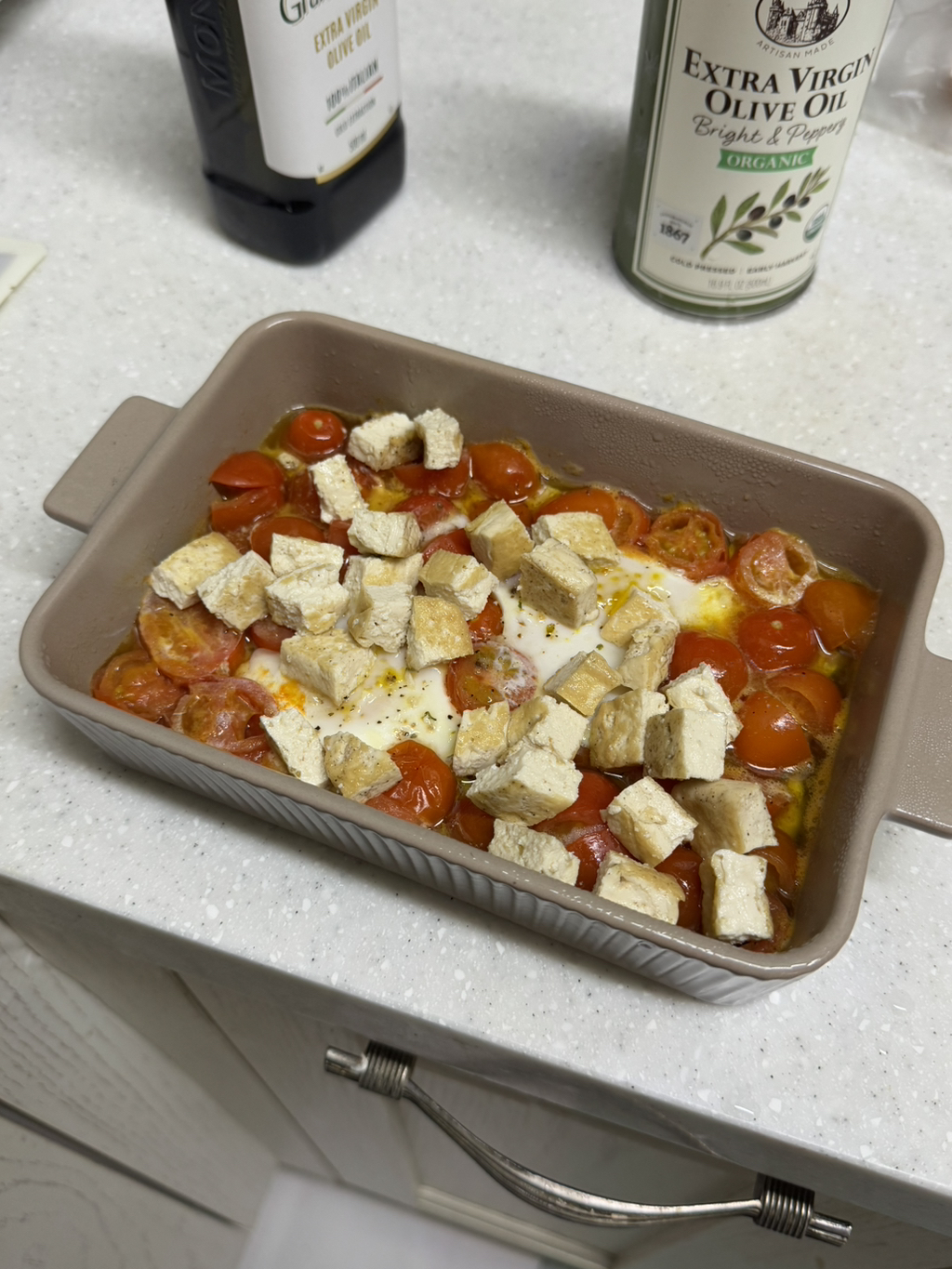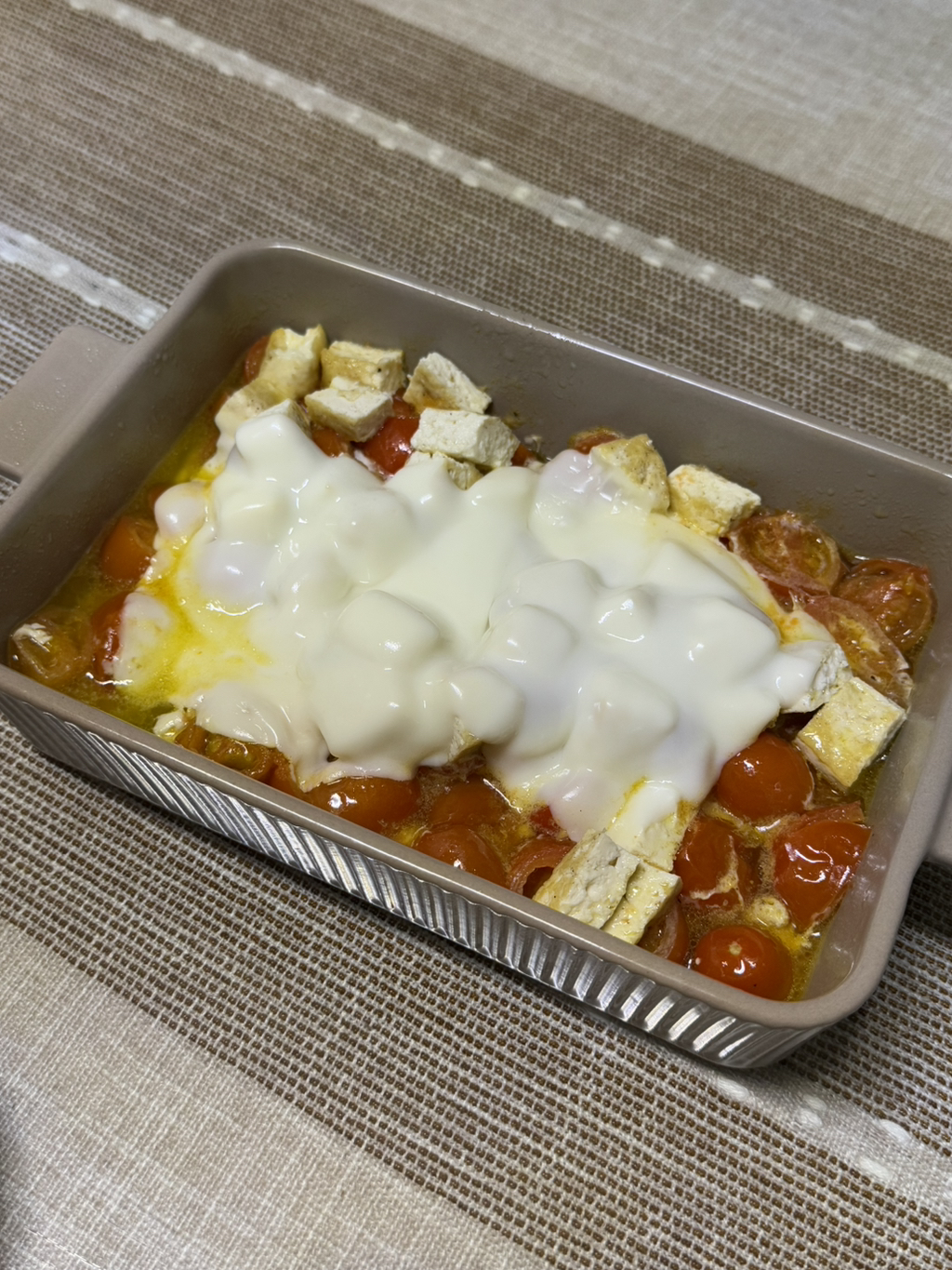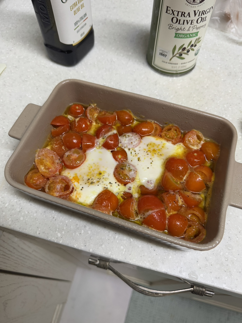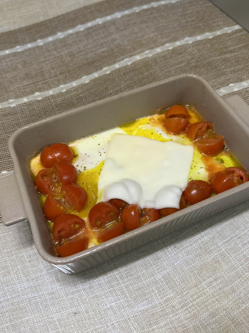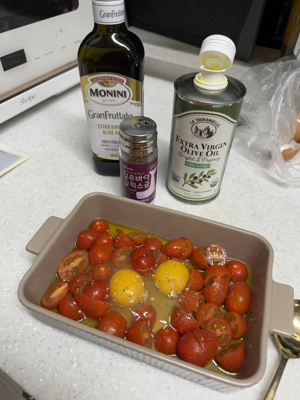 1. 전자레인지 용기나 그릇에 올리브오일+방울토마토 넣고 토마토에 오일을 잘 묻혀줘(트러플 오일 가능, 식용유 불가)
