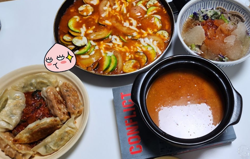 아래 사진에선 오른쪽 상단에 있는게 물막국수,, 친구들 초대해서 먹었는데 물막국수 칭찬받음