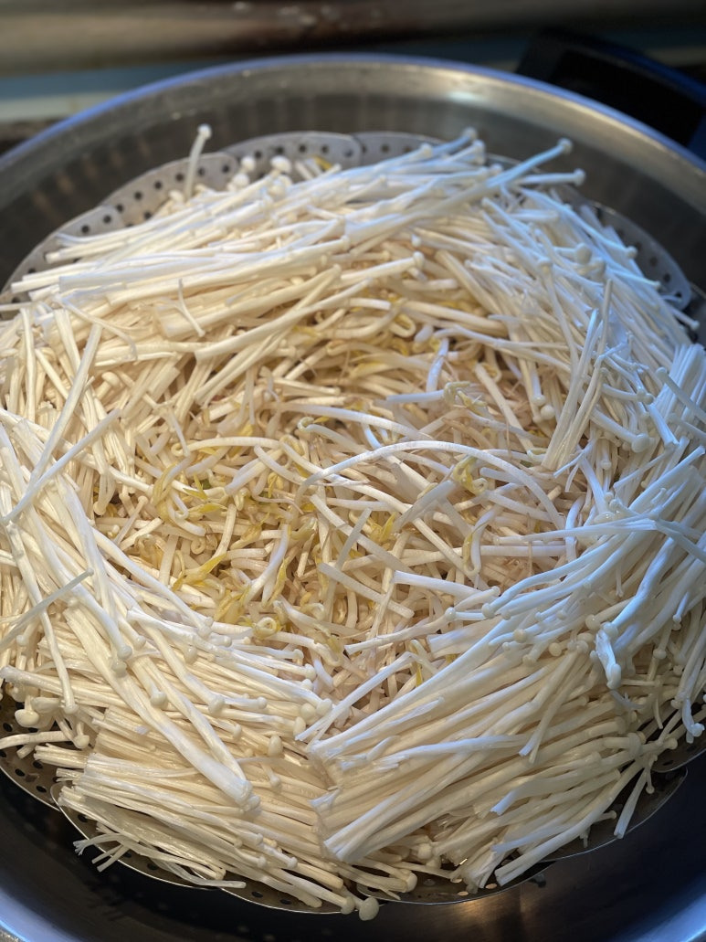 일단 숙주랑 이날은 팽이버섯 있어서 팽이버섯 씻어서 준비했고