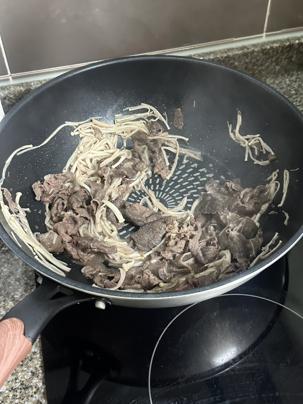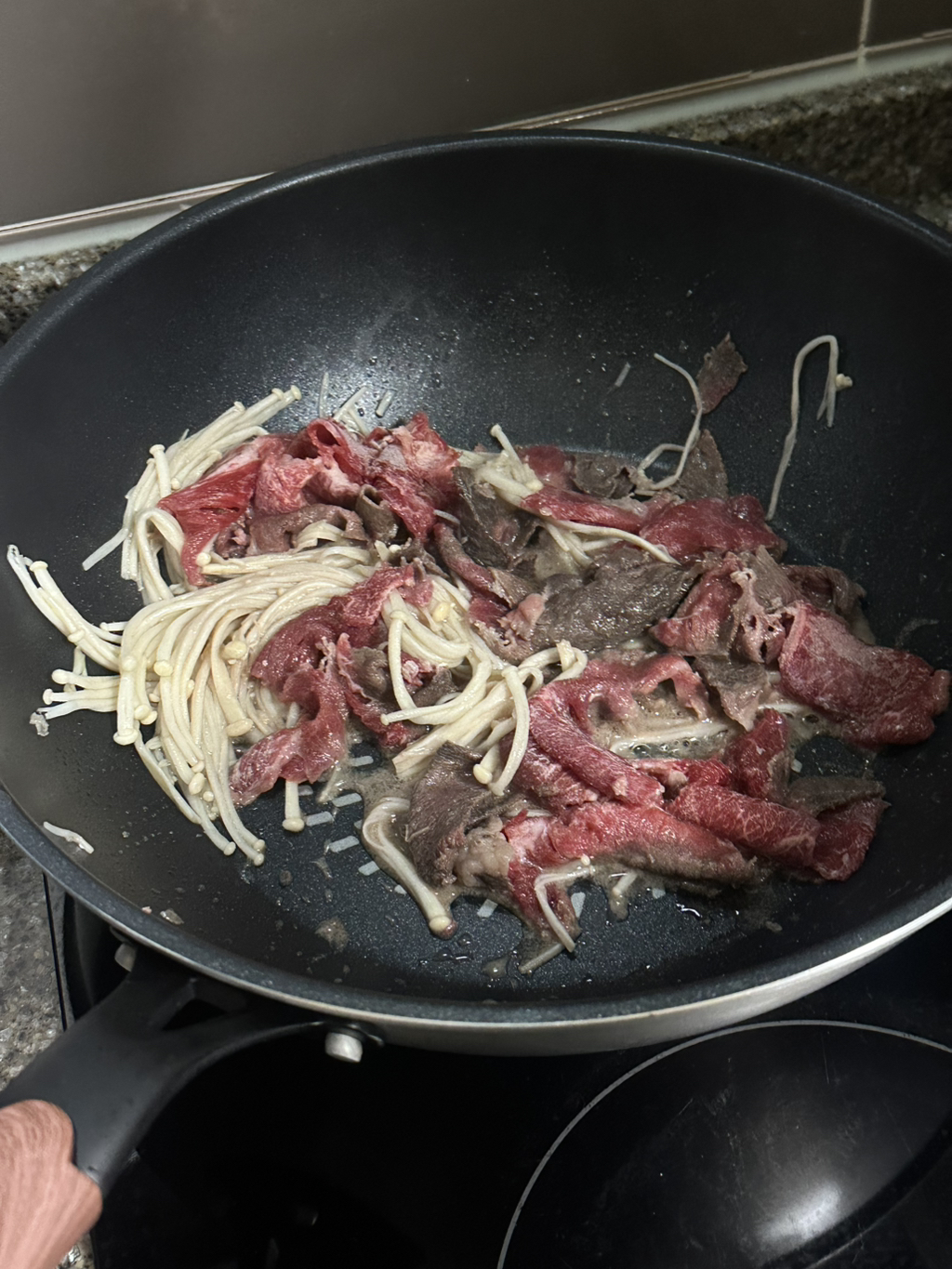 그 위에 팽이버섯이랑 차돌백이 익을때까지