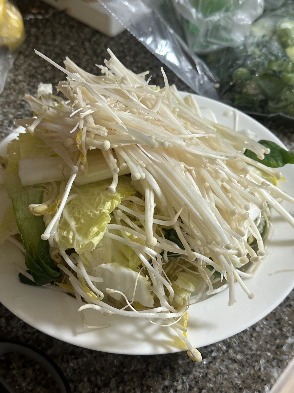 1. 알배추, 청경채, 숙주, 팽이버섯 등