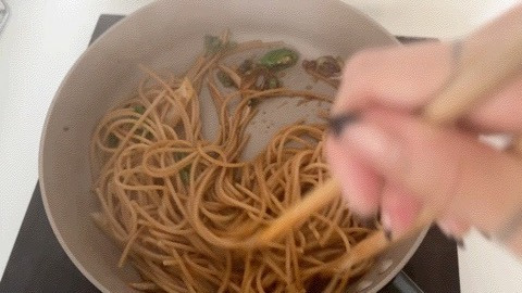 3️⃣ 간장과 야채들이 어느정도 볶아지면 면 넣고 볶걿아