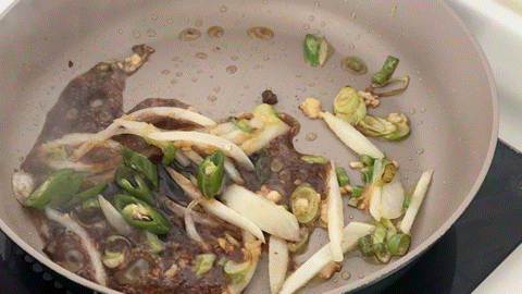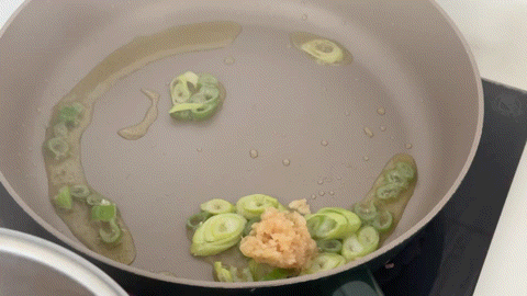 1️⃣ 일단 팬 열 올라오면 올리브유/파/다진마늘 해서 파 마늘 기름 내주걿아 (중불🔥🔥)