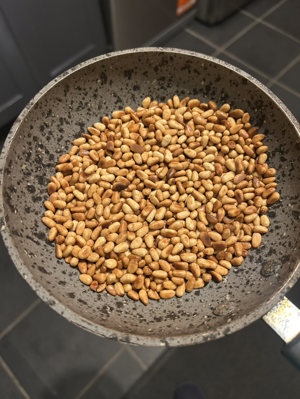 먼저 파인넛(잣)을 사진 정도로 기름없이 볶아줘!