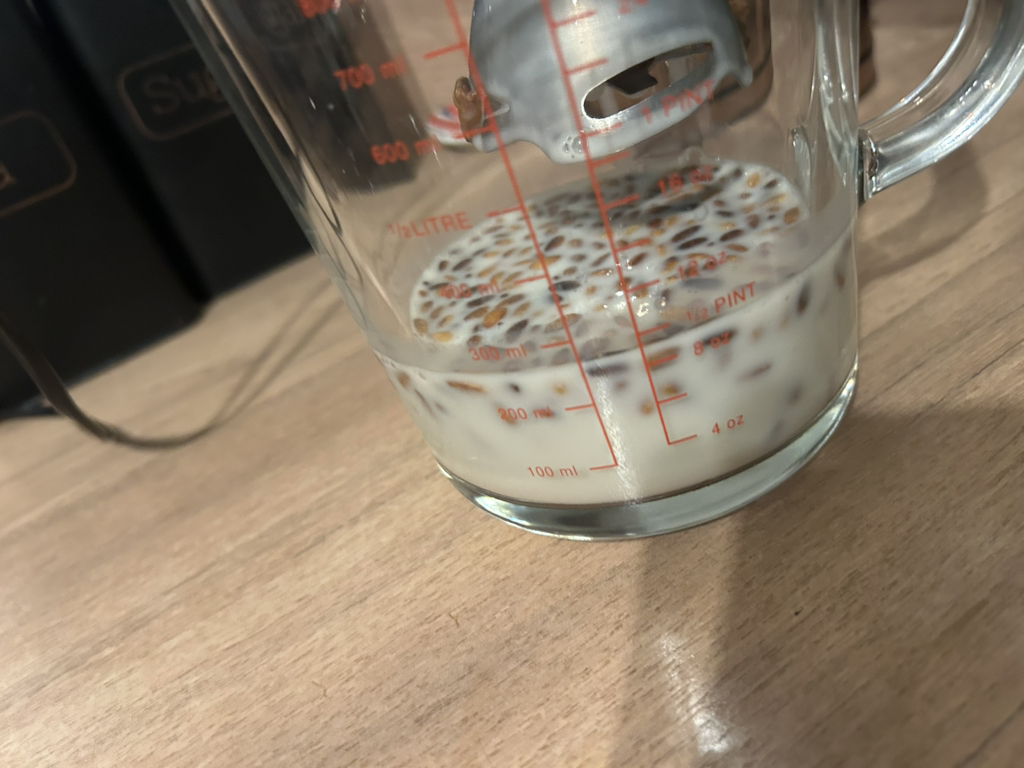 중간에 아몬드밀크 150ml 정도 더 추가해줬어!