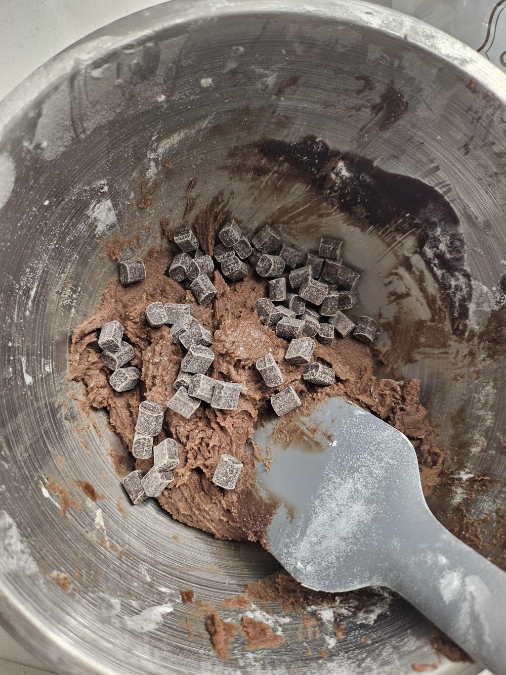 초코칩을 취향대로 넣고 또 섞어줍니다.
