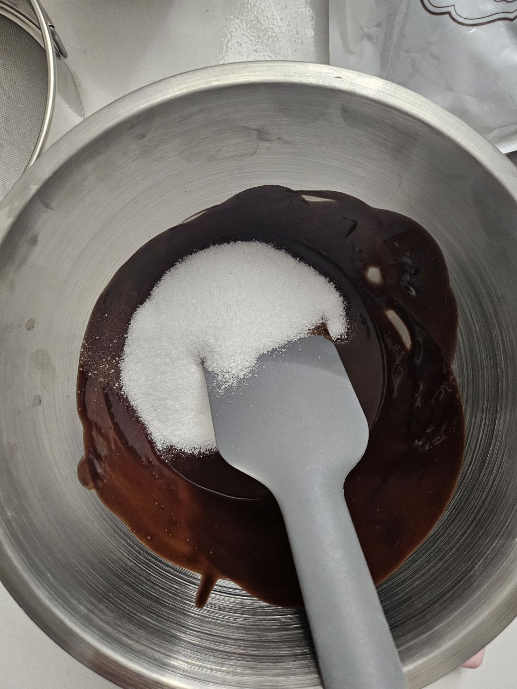 다 녹였으면 설탕을 넣어서 또 마구 섞어주세요.