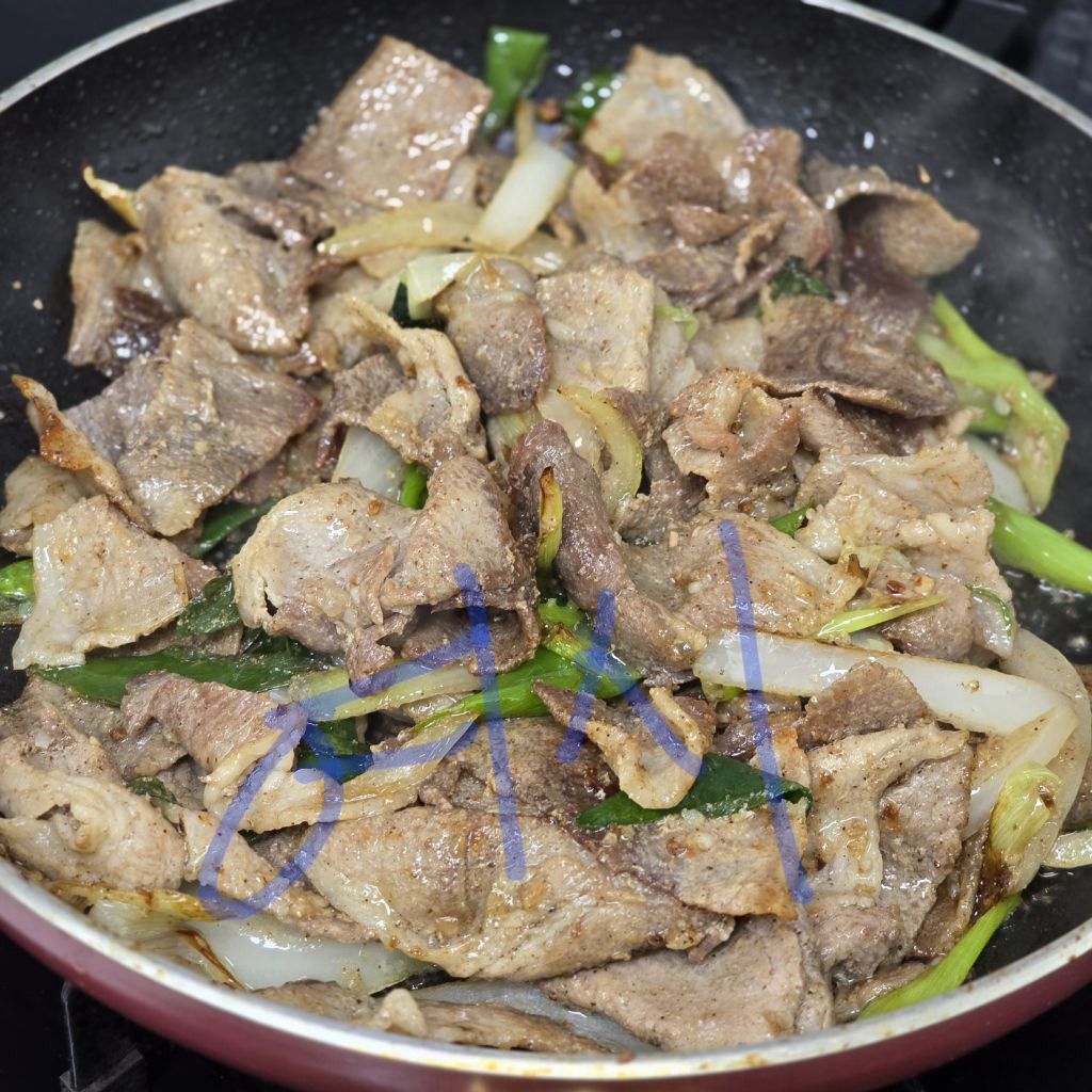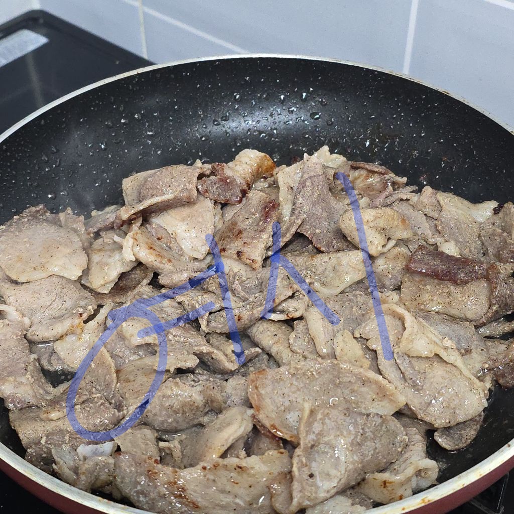 앞다리살이라 식용유 넣었는데 대패, 우삼겹으로 할거면 안넣는게 좋아!!
