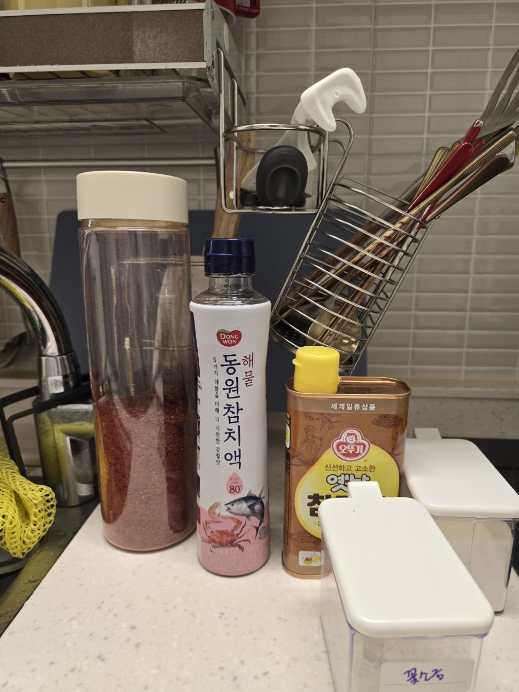 고춧가루, 참치액, 참기름, 소금, 설탕