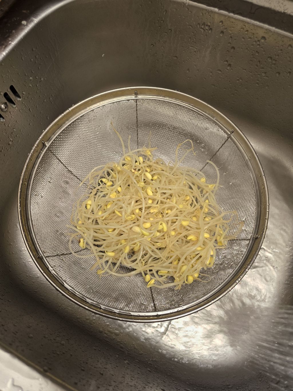 3. 채반에 붓고나서 찬물 한바퀴 돌려서 식혀