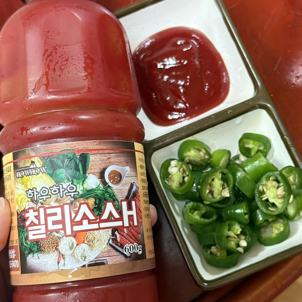 칠리소스 종지에 덜어서