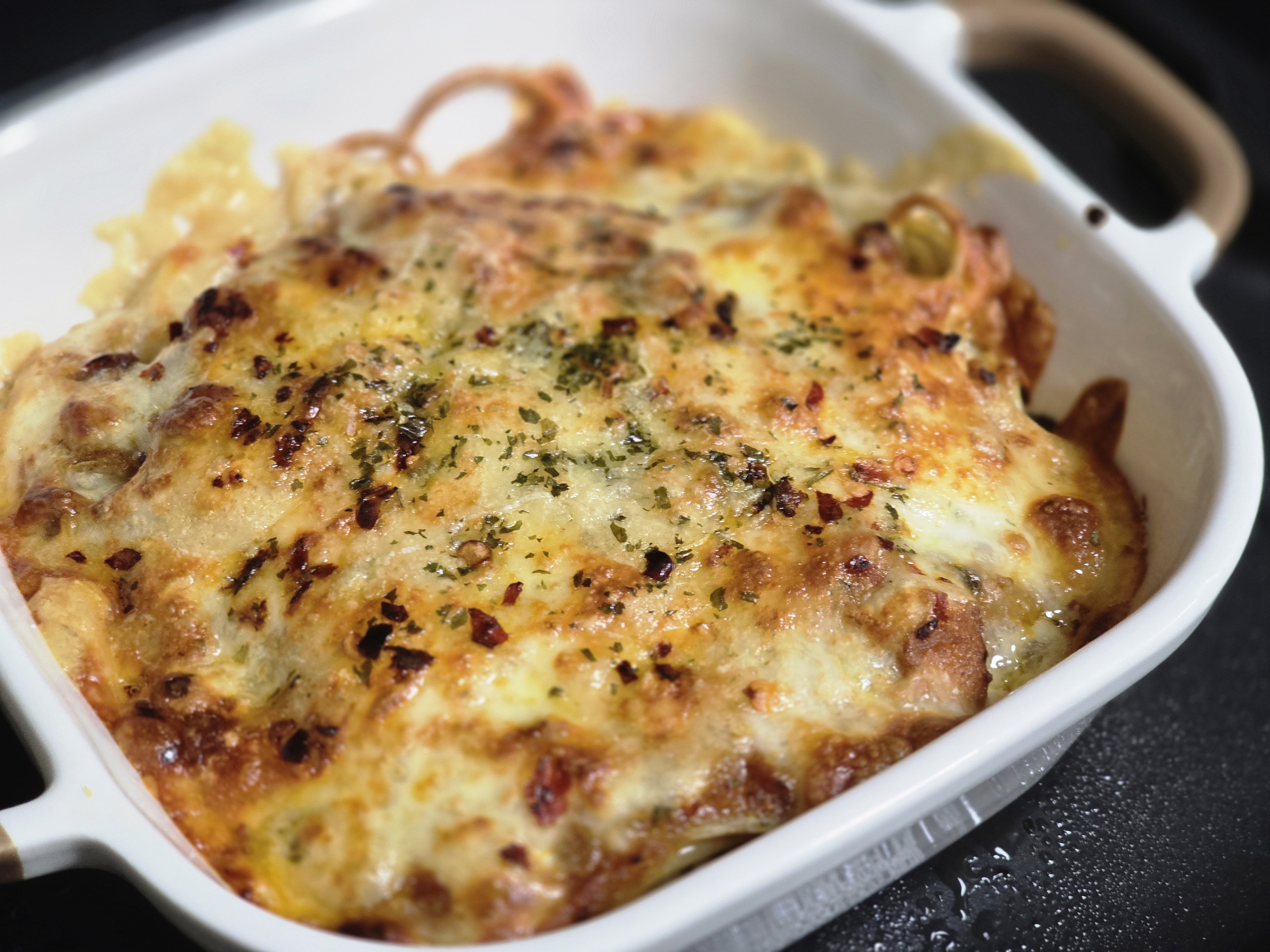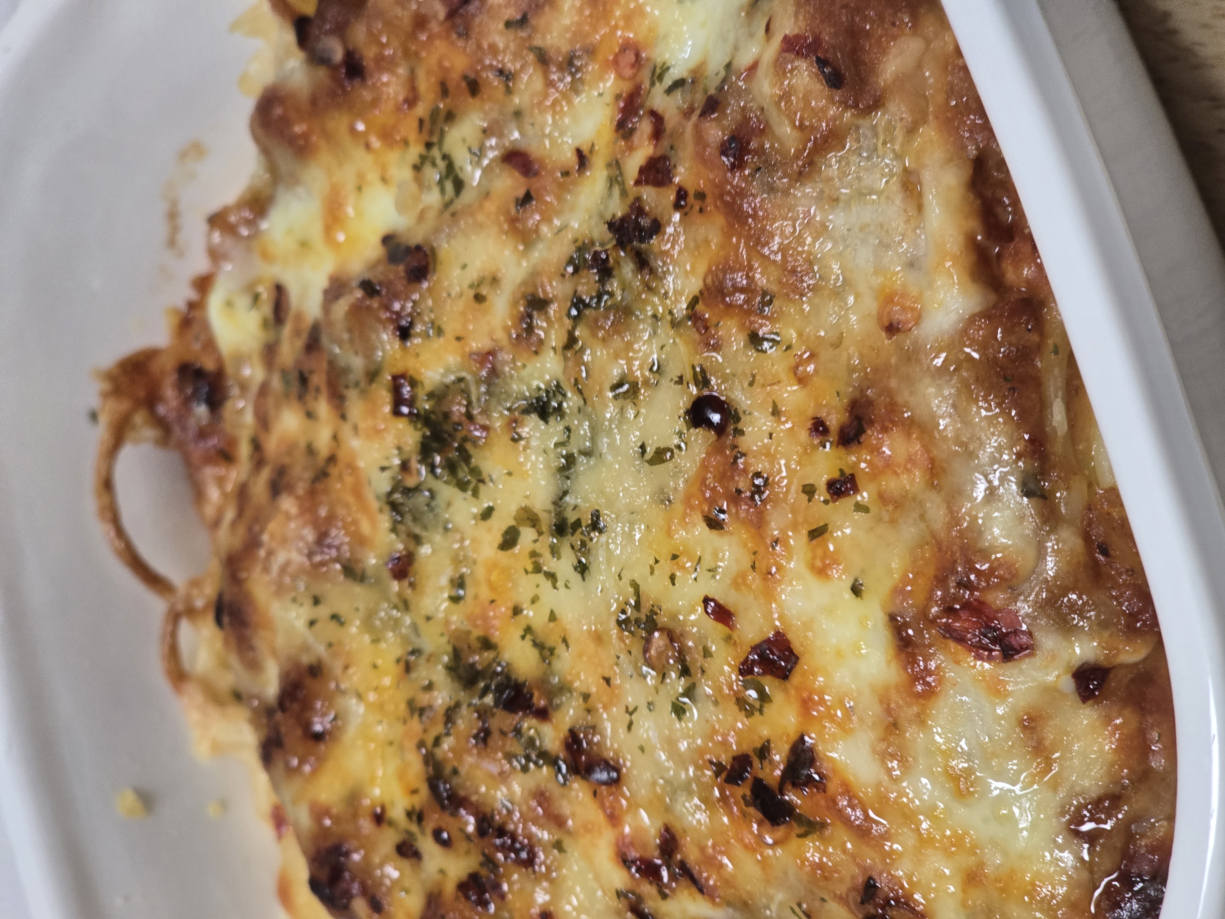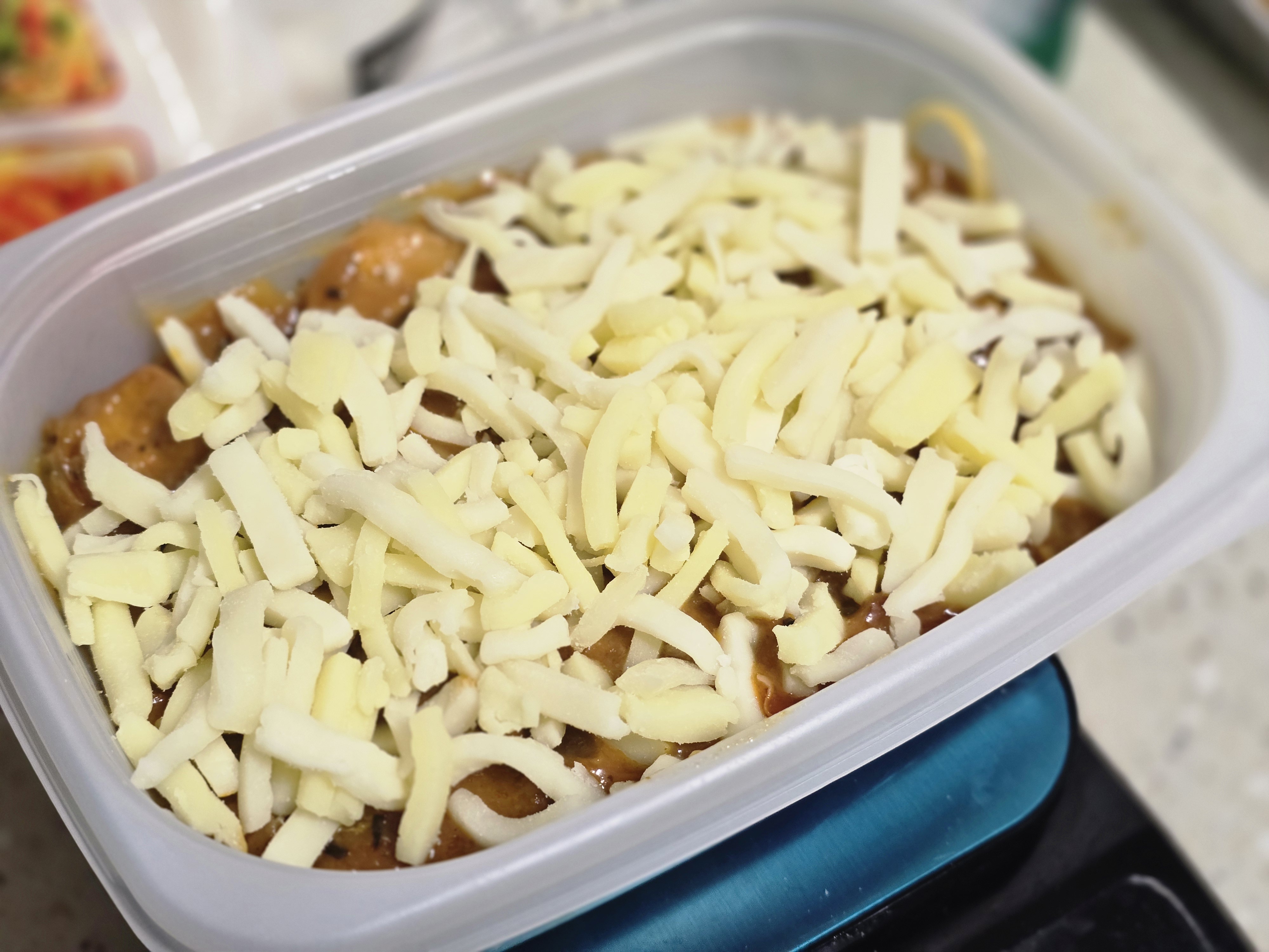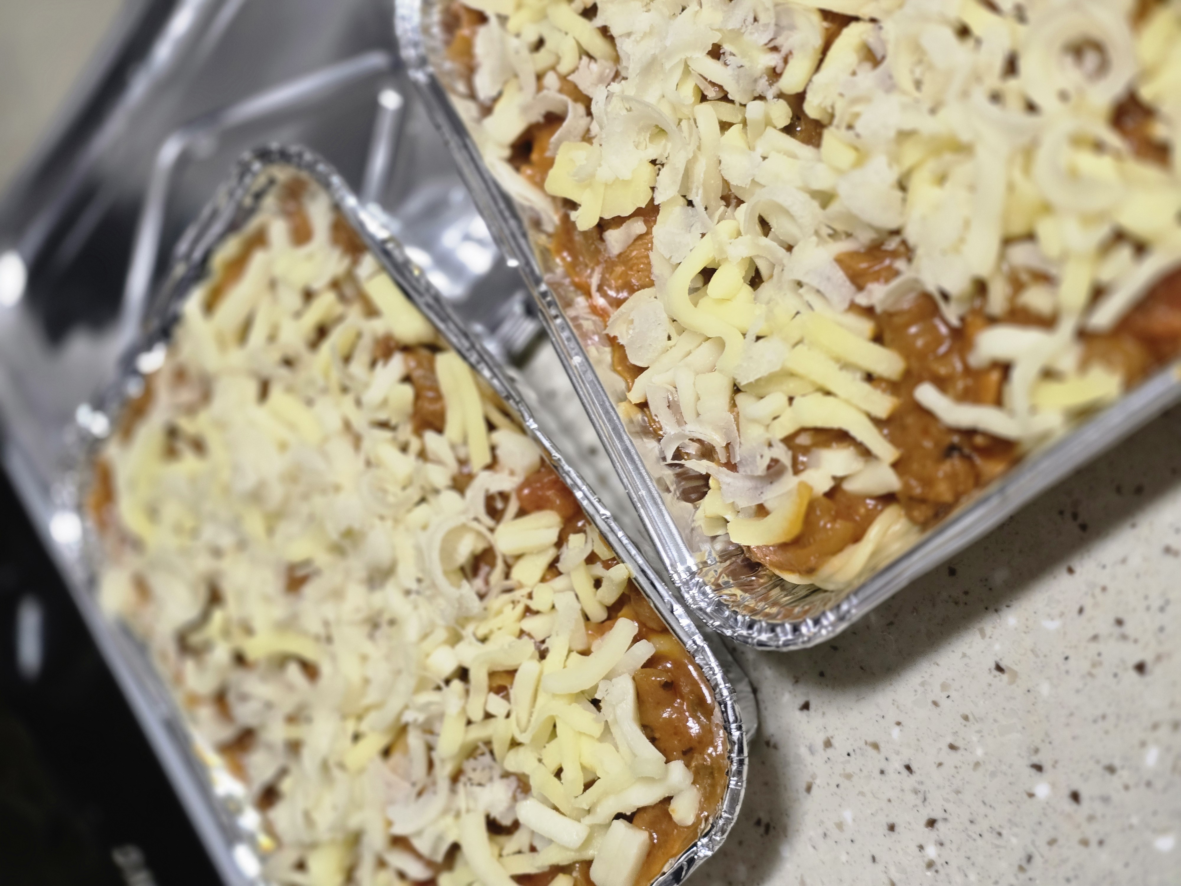 해동없이 그라탕용기에 에프180도 3분하니까 치즈가 더 노르스름하게 바싹 굽고싶어서 추가 200도 2분