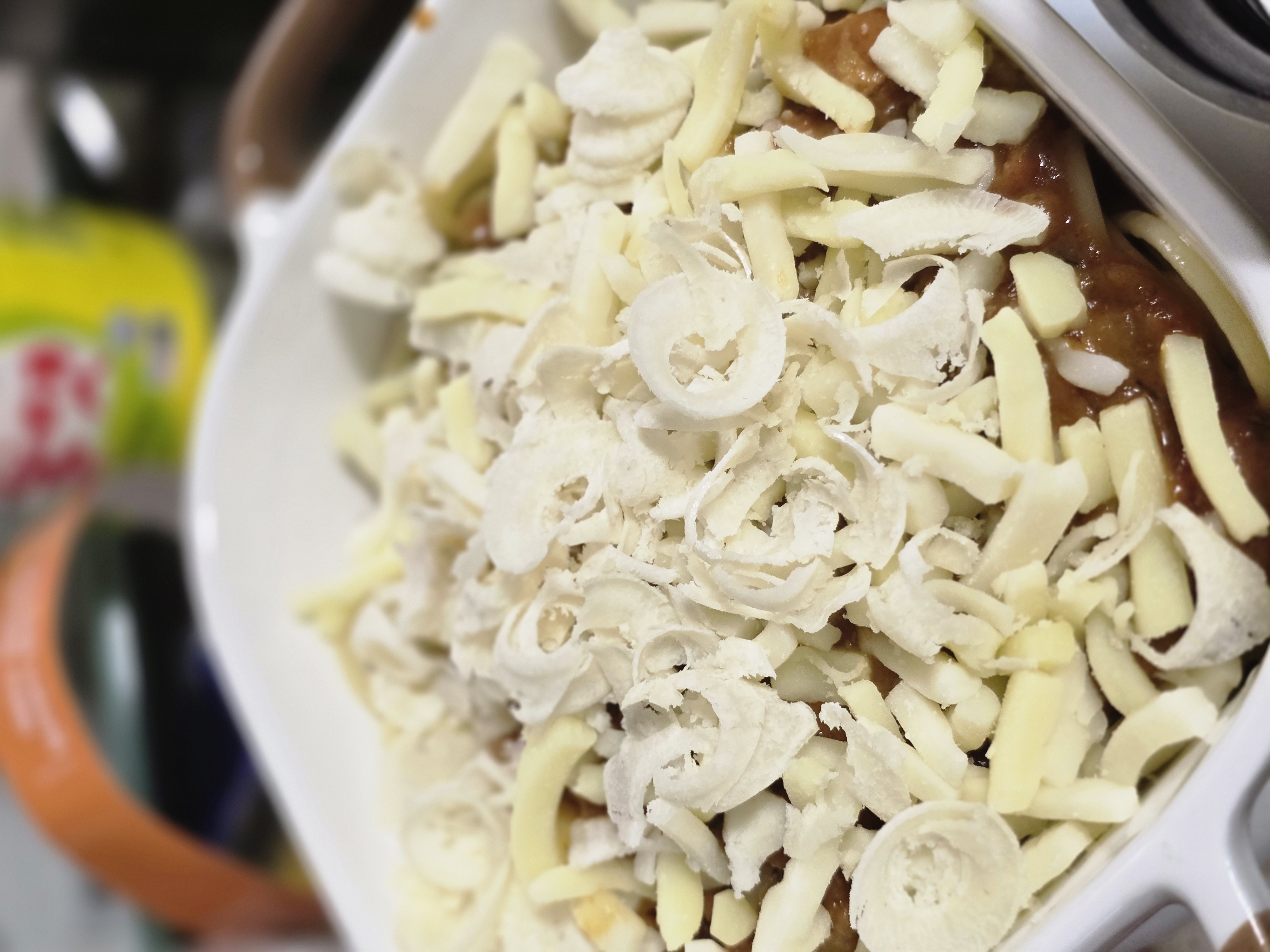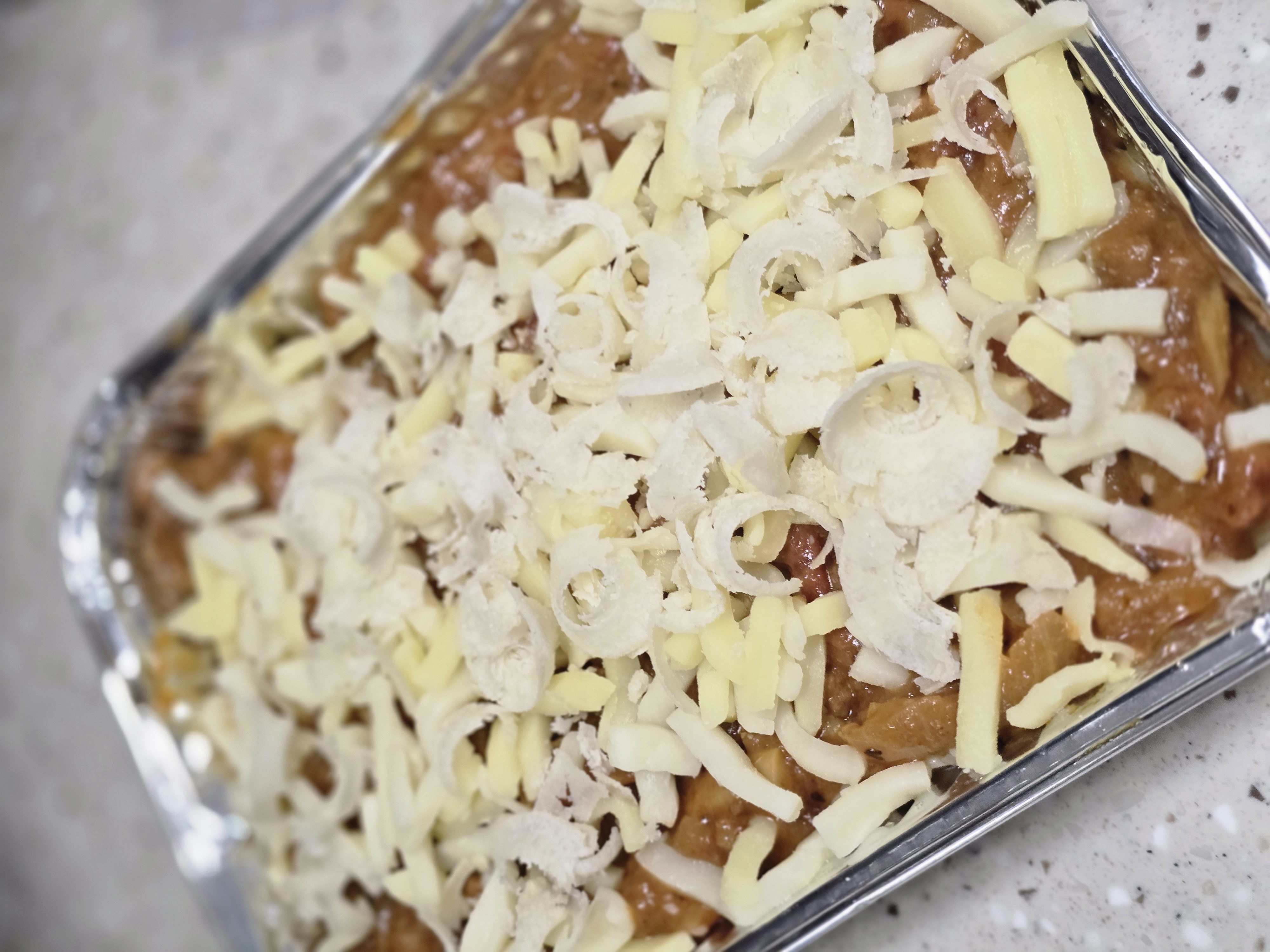 3. 치즈는 한가지만 해도 좋고, 집에 있다면 여러가지 넣어도 되고 피자치즈올린상태로 파마산 치즈가루 넣어도 되고 아님 나중에 먹기전에 뿌려도 괜찮아!