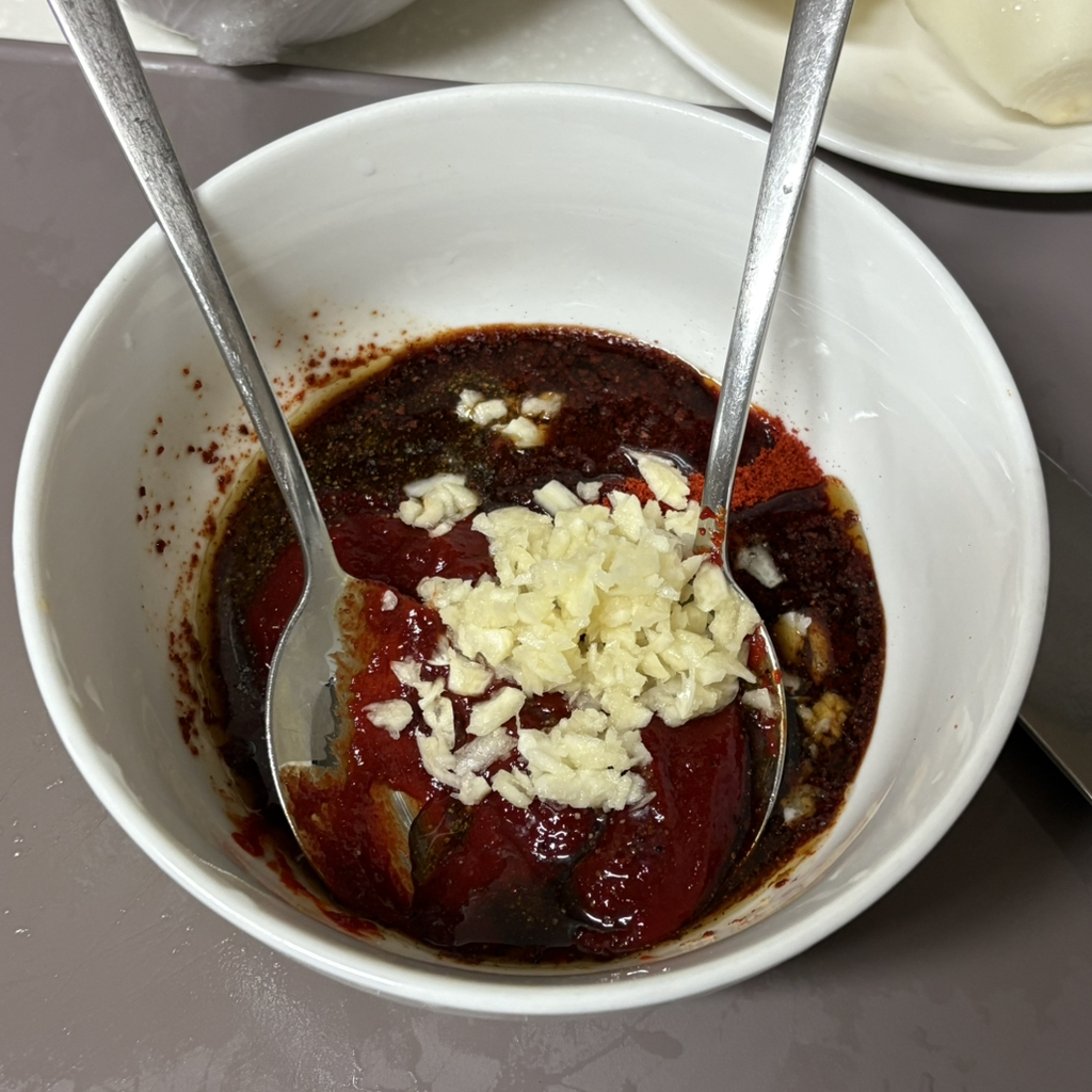 고추장 1.5 / 고춧가루 2 / 간장 2.5 / 다진마늘 1 /