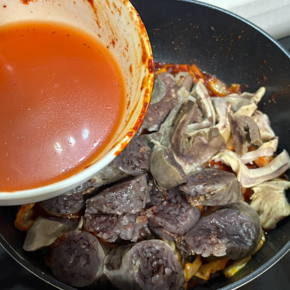 - 순대 넣고 물을 밥그릇 기준 반그릇 정도 넣어요