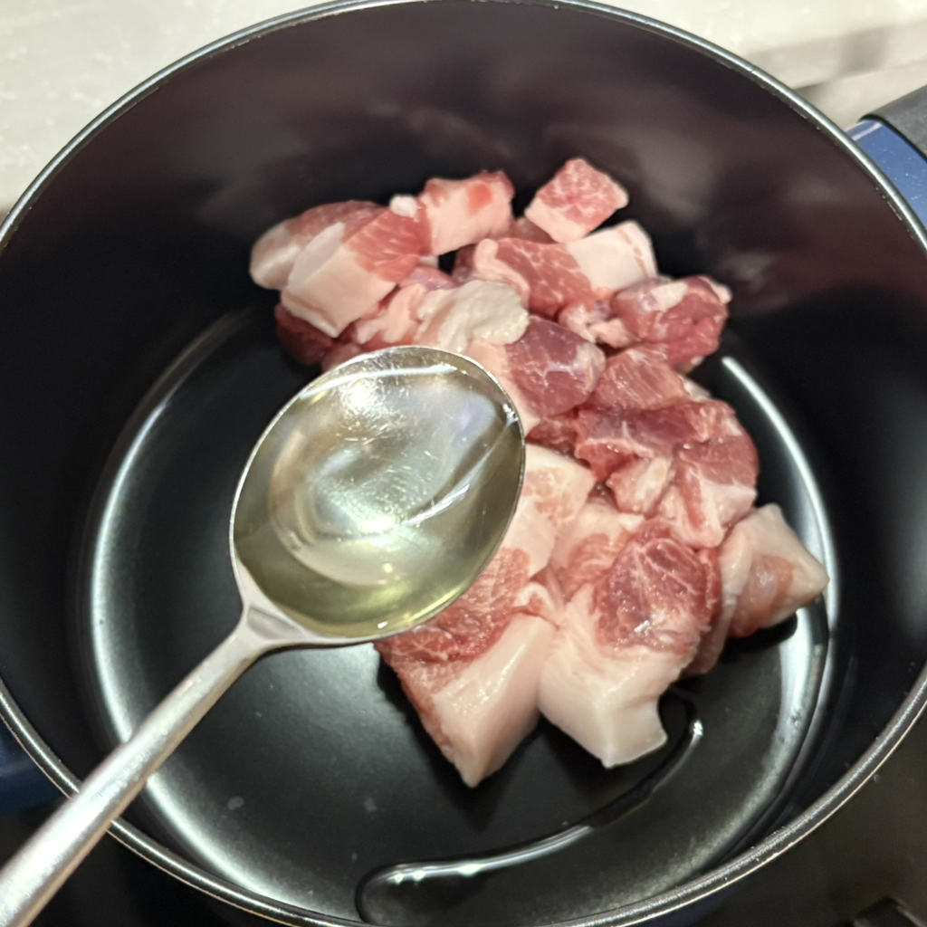 - 기름 두른 냄비에 고기 볶다가 맛술 1숟가락 넣어주세요