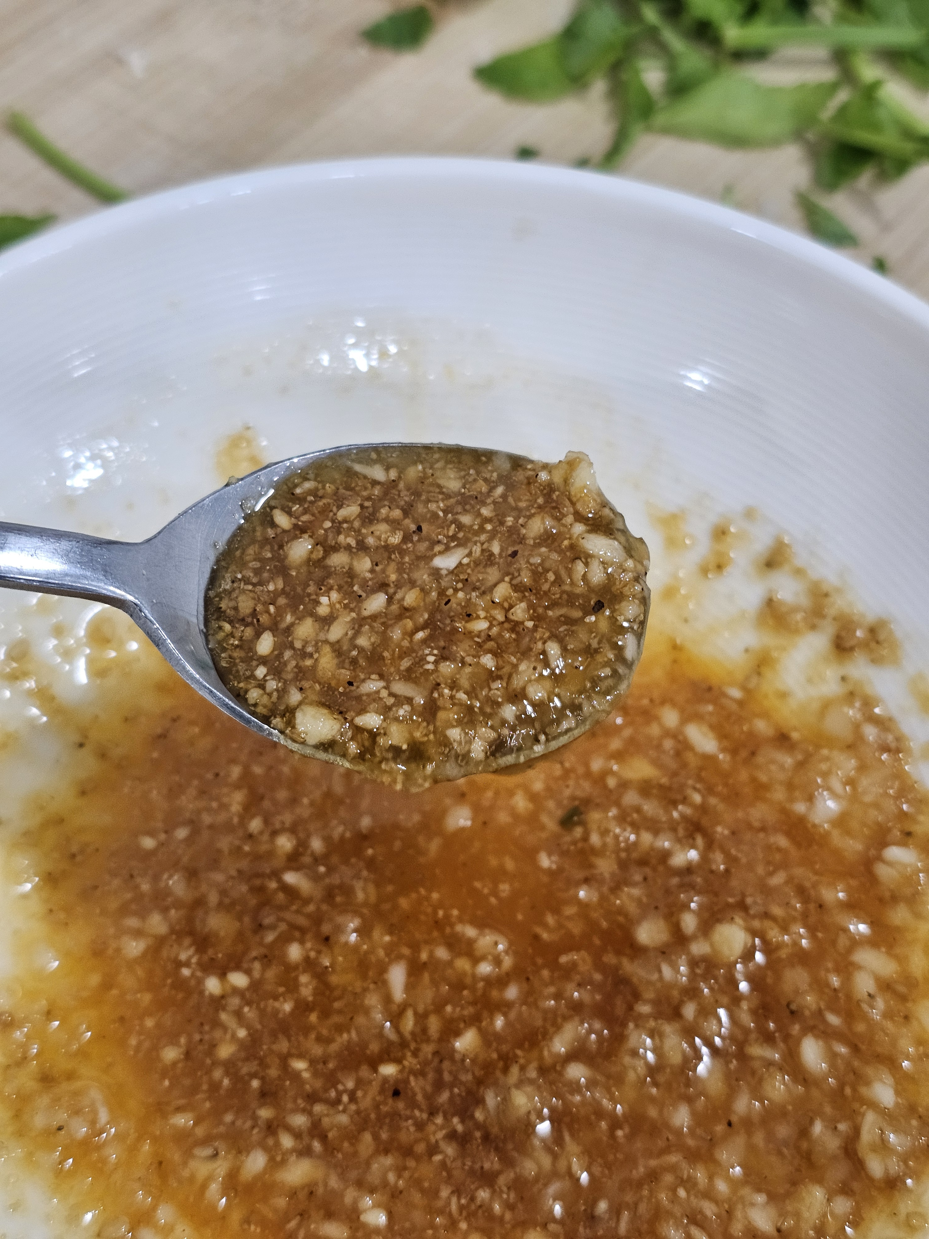 연두 2 + 설탕 2 + 맛소금 1작 + 참기름 3 + 후추 + 다진마늘 많이
