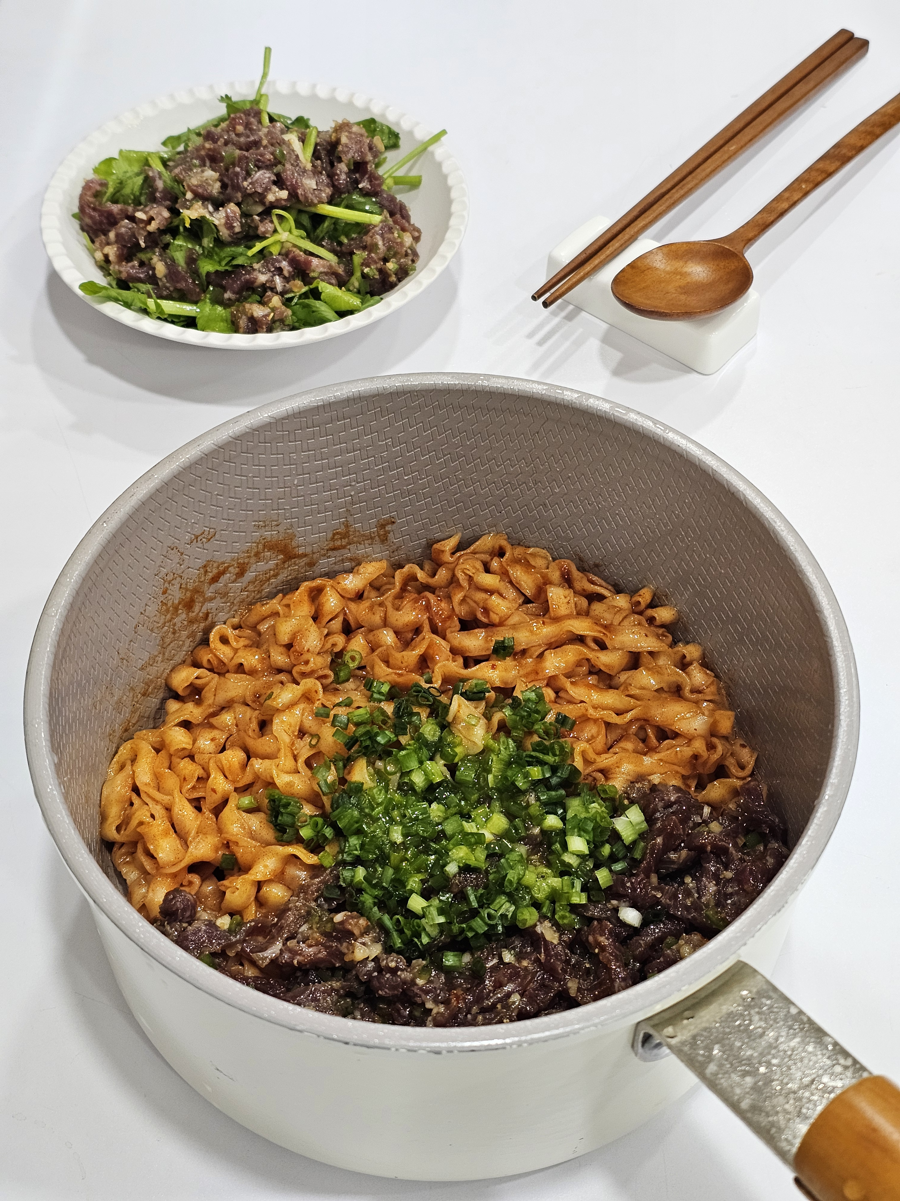 그치만 칼빔면 + 미나리