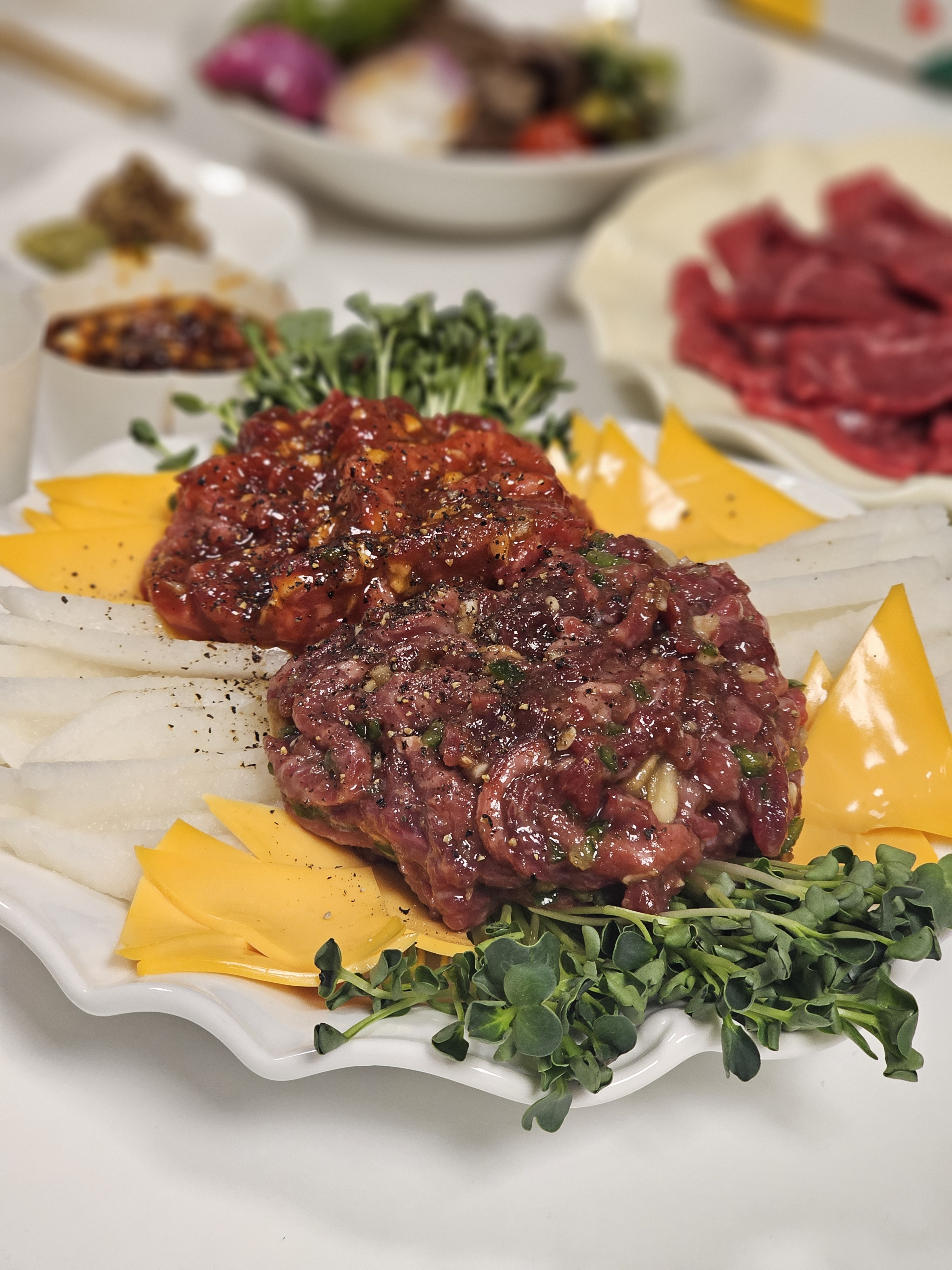 차돌 육회 쌈