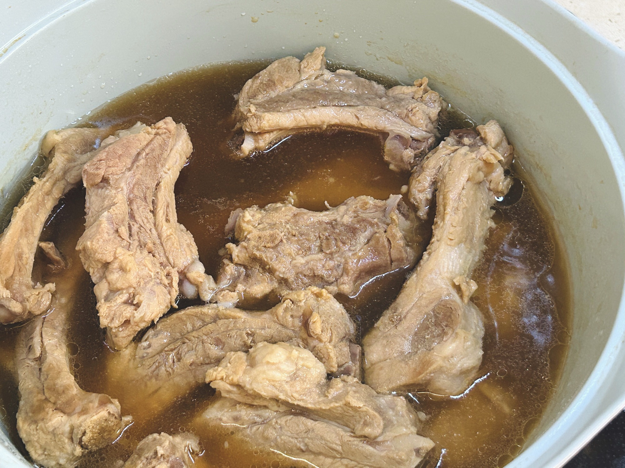 등갈비도 은근 기름이 많음.. 둥둥 뜬 기름 걷어내고