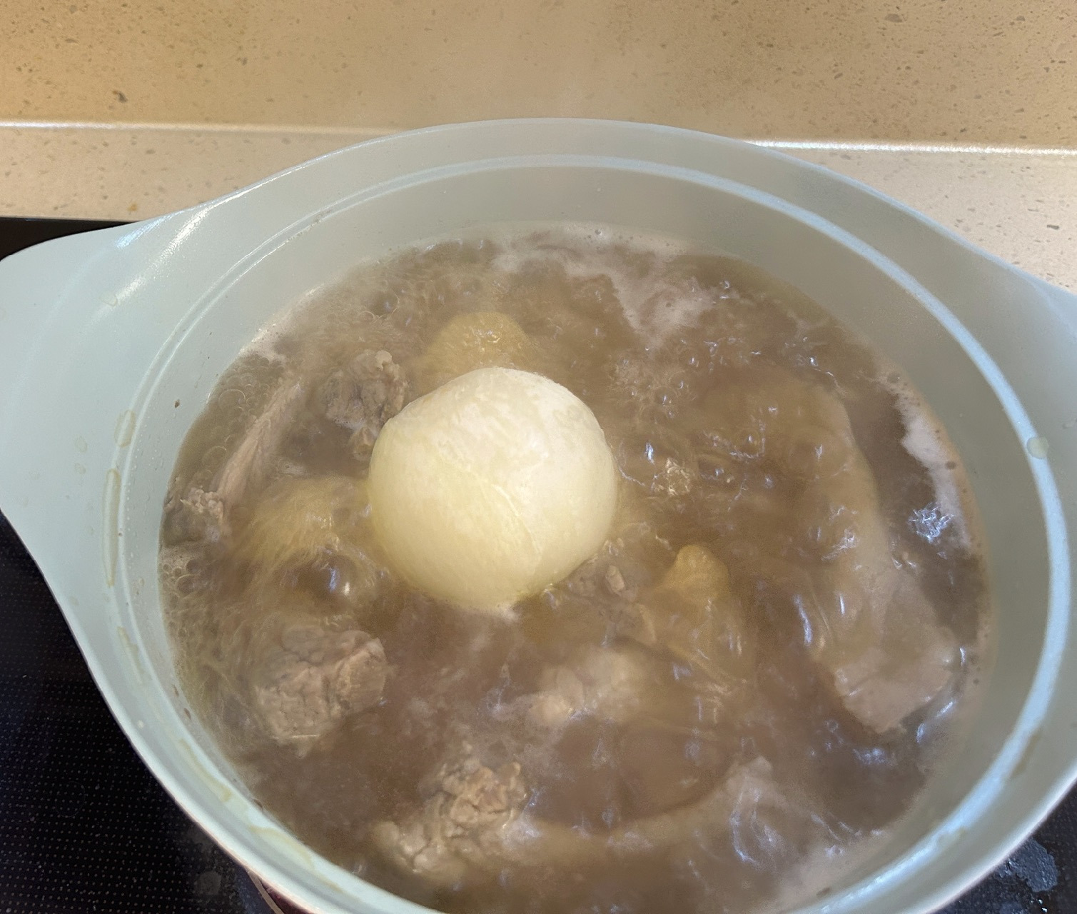 양파 하나 넣고 고기가 잠기게 다시 물 추가하고