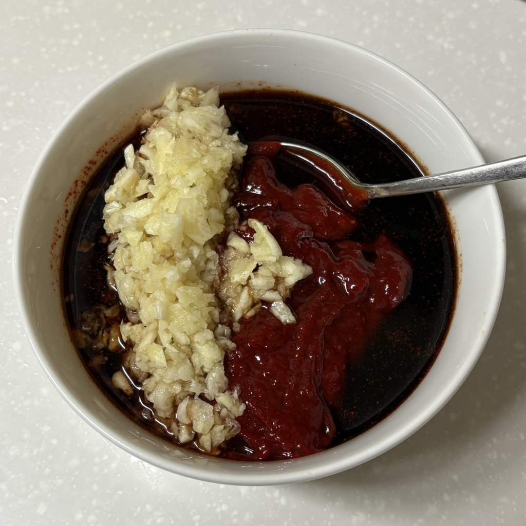 - 양념 : 고추장 5 간장 5 맛술 5 고춧가루 5 설탕 3 다진마늘 3 물엿 1 (밥숟가락기준)