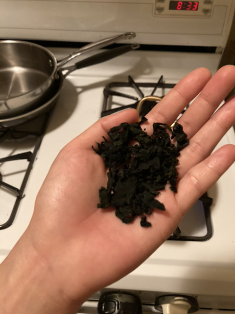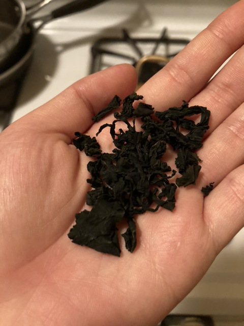 재료: 식용 기름, 참기름, 고춧가루, 다시다, 미역, 어묵, 새우, 갈릭파우더or다진마늘