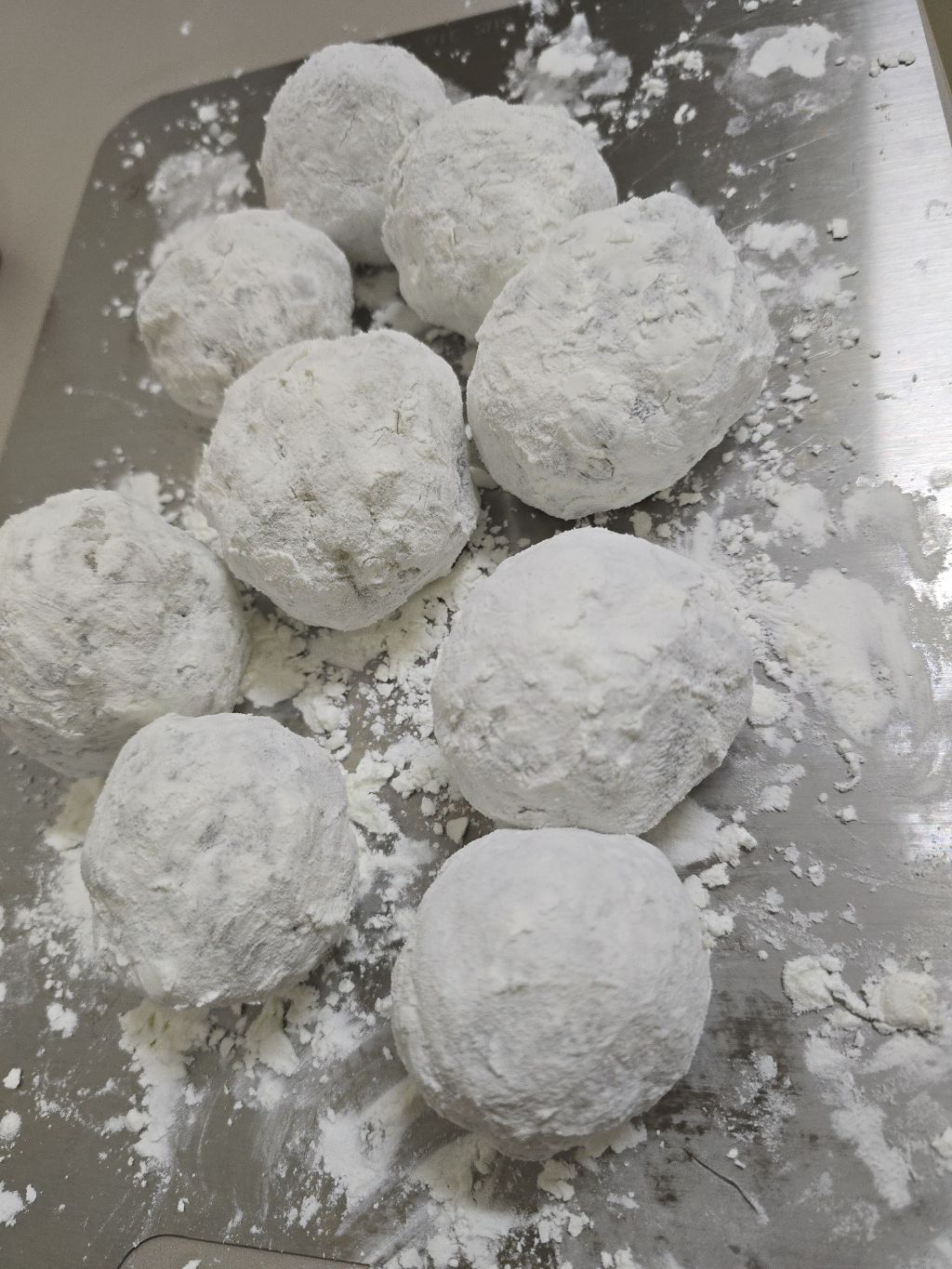반죽이 손에 들러붙으니까,