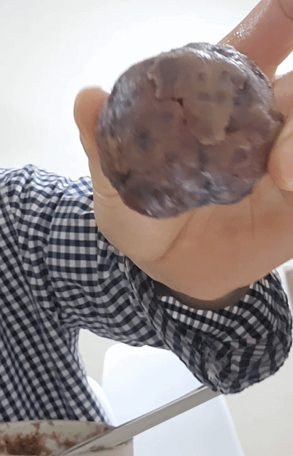 연양갱 포크로 눌렀늘 때 으깨지면