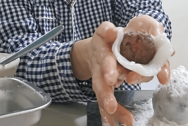손에 물 먼저 묻혀서 하기!