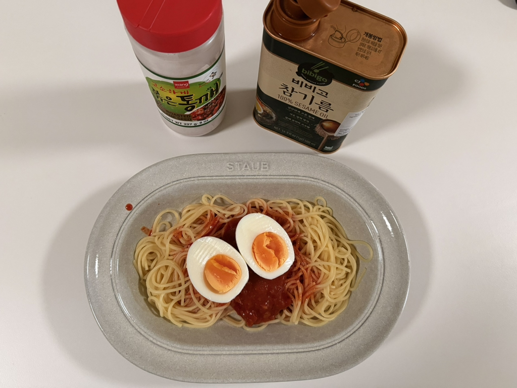지난주에 한번 해먹어보고 거의 매일 주구장창 해먹는 초간단 비빔면! 김풍의 암흑 파스타🍝