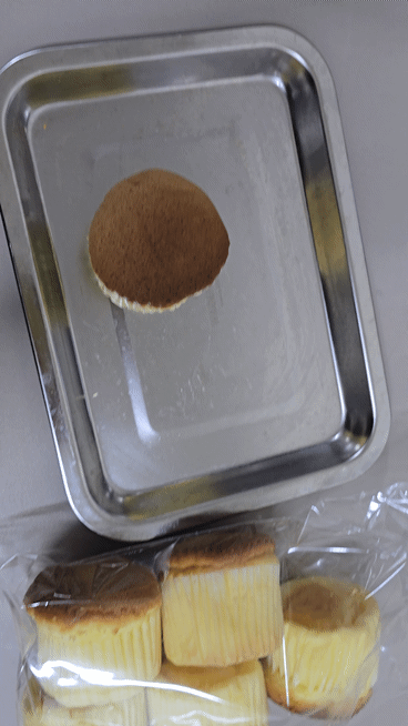 동그란 카스테라를 작게 갈아주기.