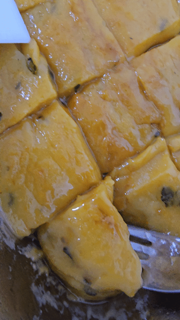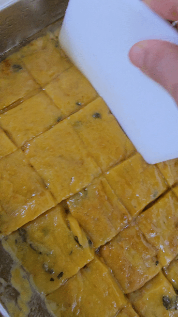 2-5. 참기름 소량 바른 스크래퍼로 떡 자름