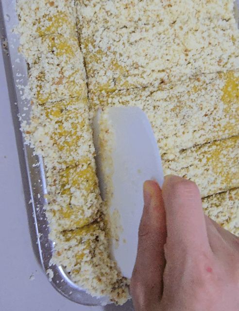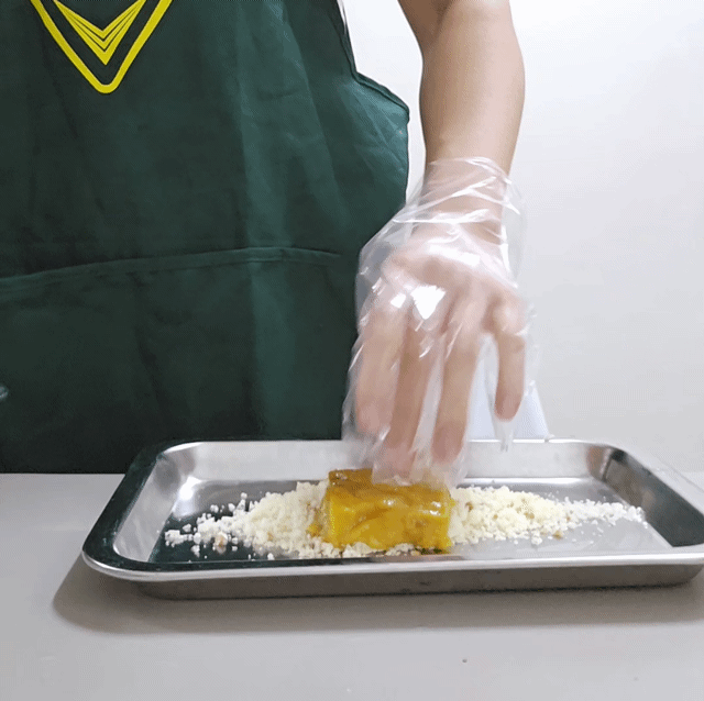 카스테라 고물을 묻힌다.